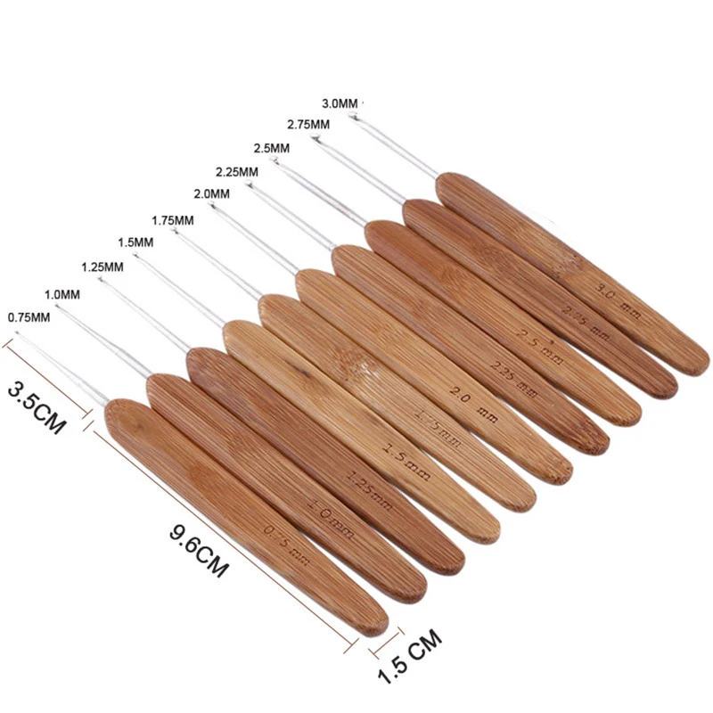 10 шт. смешанный размер 0,75 мм-3 мм крючком вплетаемая Пряжа Ремесло вязальная игла бамбуковые ручки вязальные крючки инструменты для игл