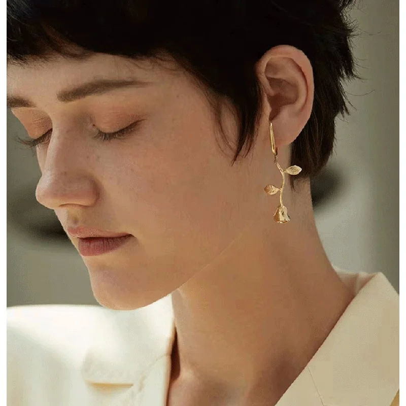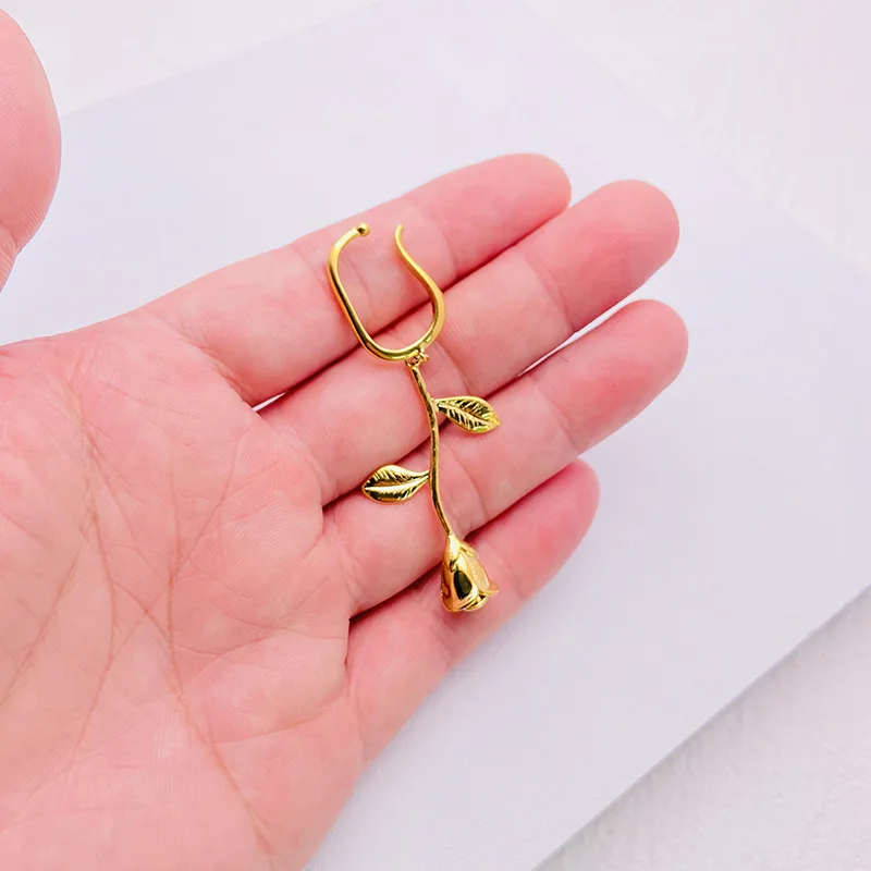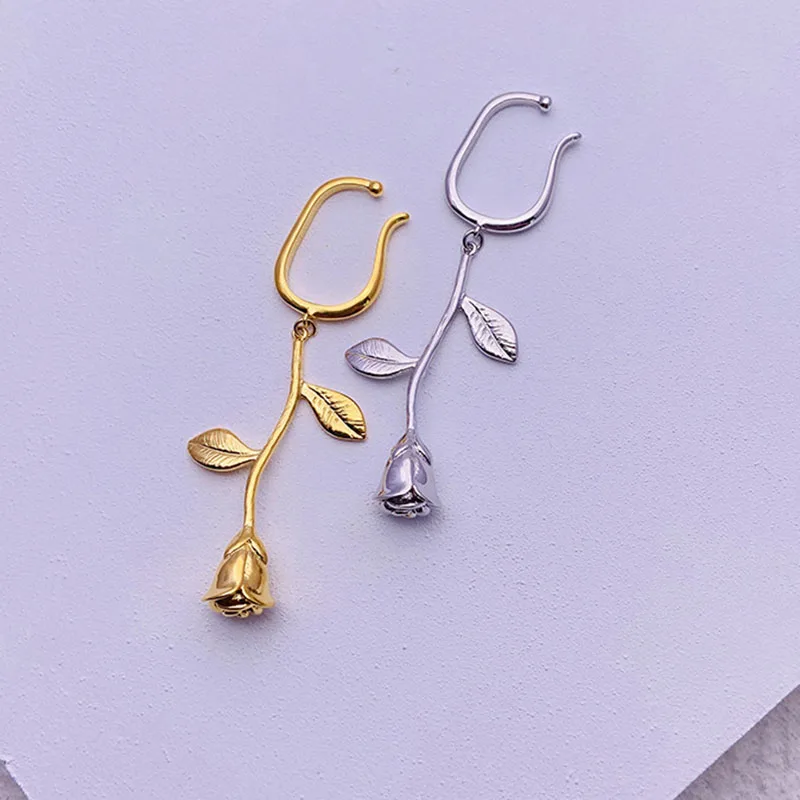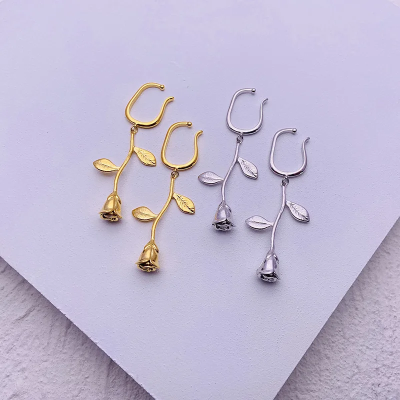 Советы: Цена указана за одну штуку. Не за одну пару, пожалуйста, закажите две пары, если вам нужна одна пара, спасибо. Материал: медный сплав Размер: 66 мм * 15 мм Вес: 5,6 г/шт. Цвет: Золотой и Серебряный Женские серьги-клипсы с розовым цветком, без пирсинга, модные ювелирные изделия, Винтажный Золотой Серебряный цвет 2020