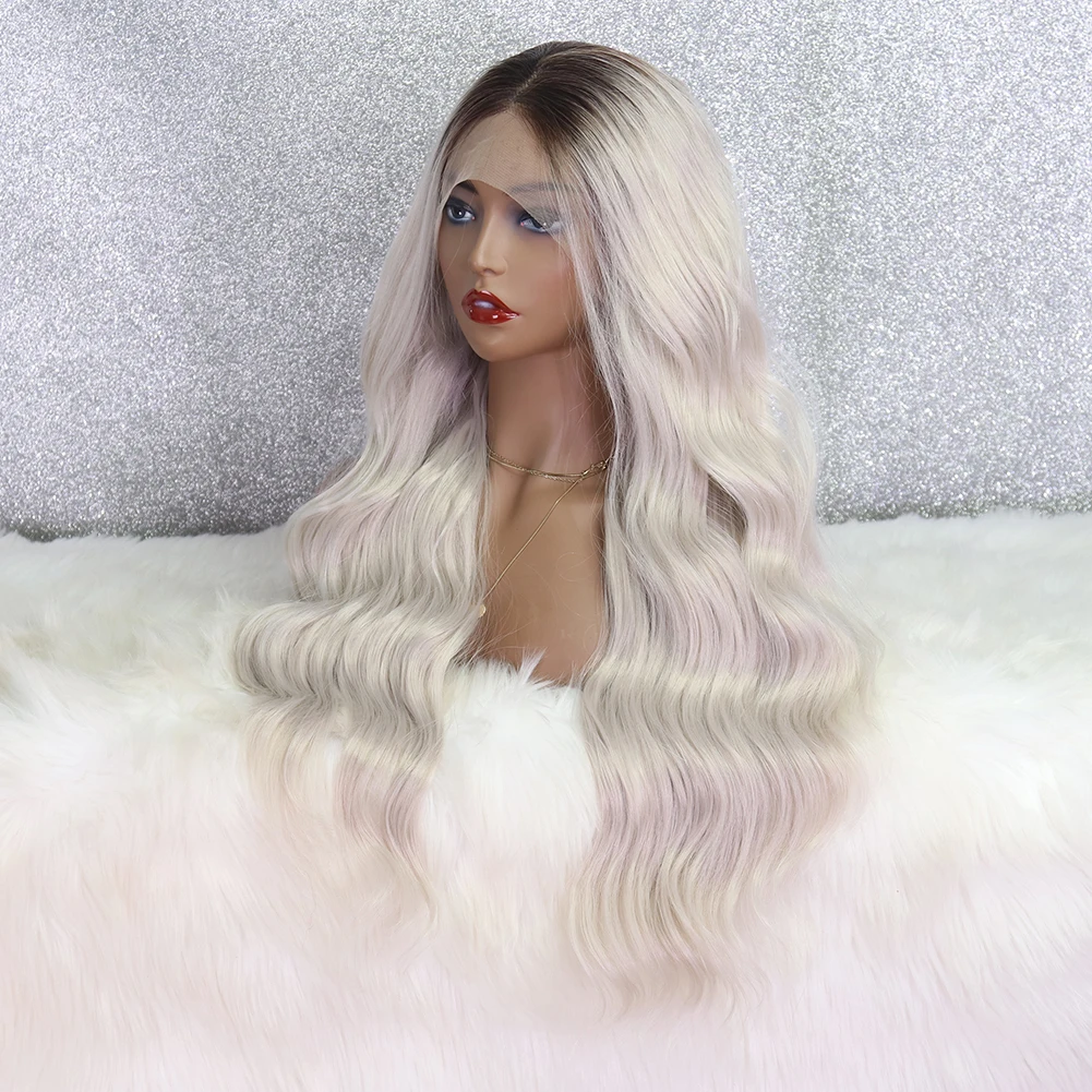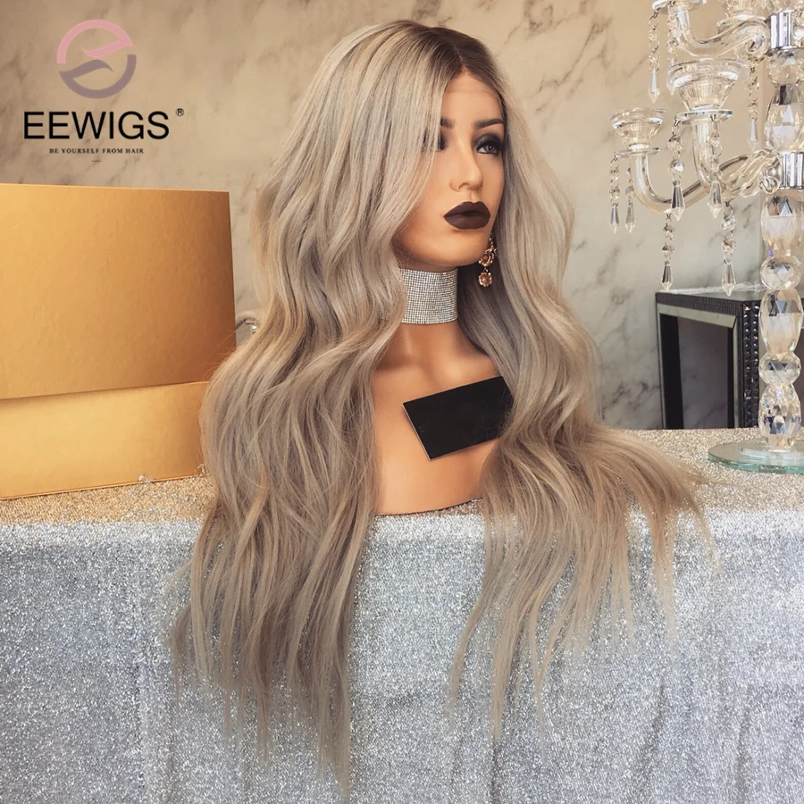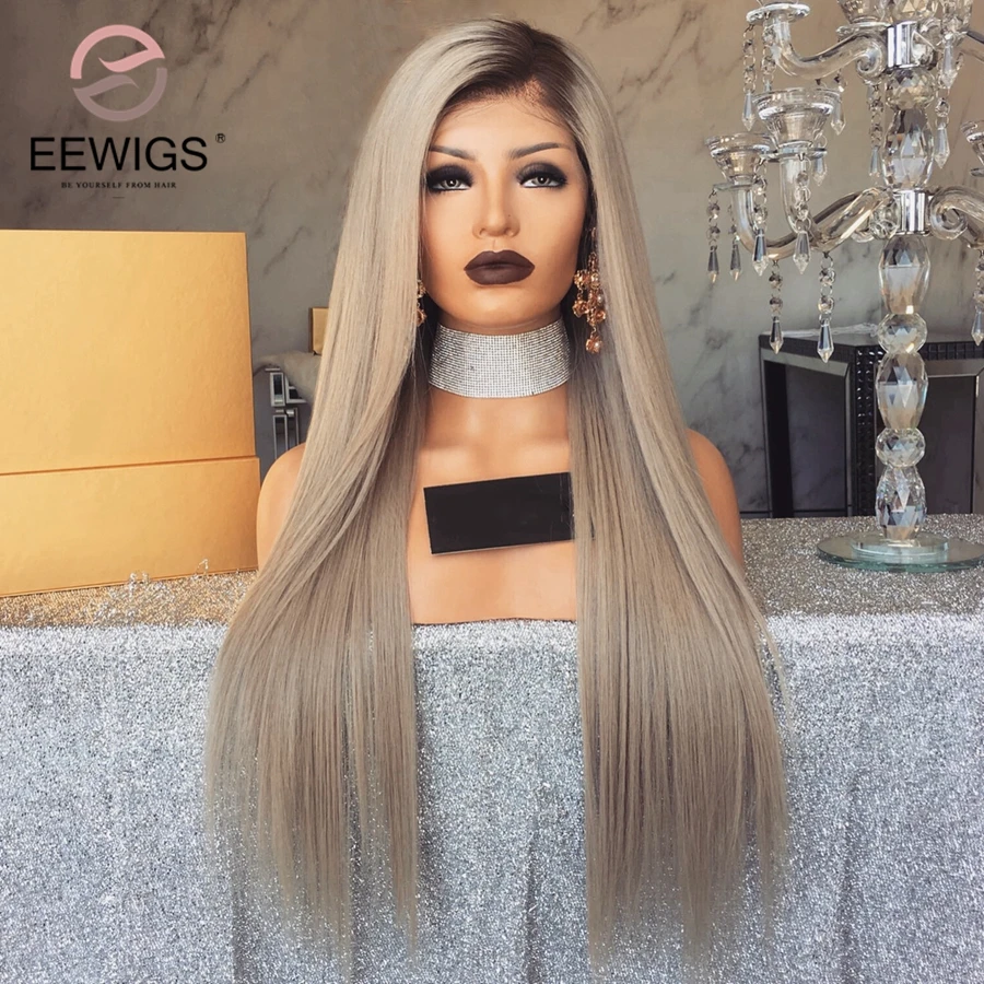 EEWIGS Ombre пепельный блонд парик длинный прямой синтетический парик на фронтальной сетке с детскими волосами термостойкие коричневые волнистые парики для чернокожих женщин
