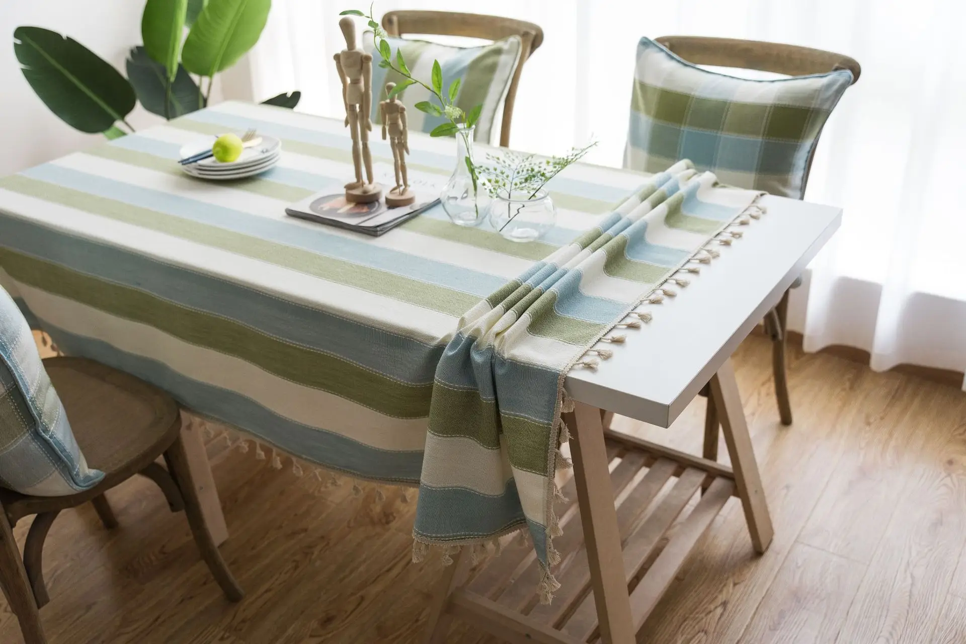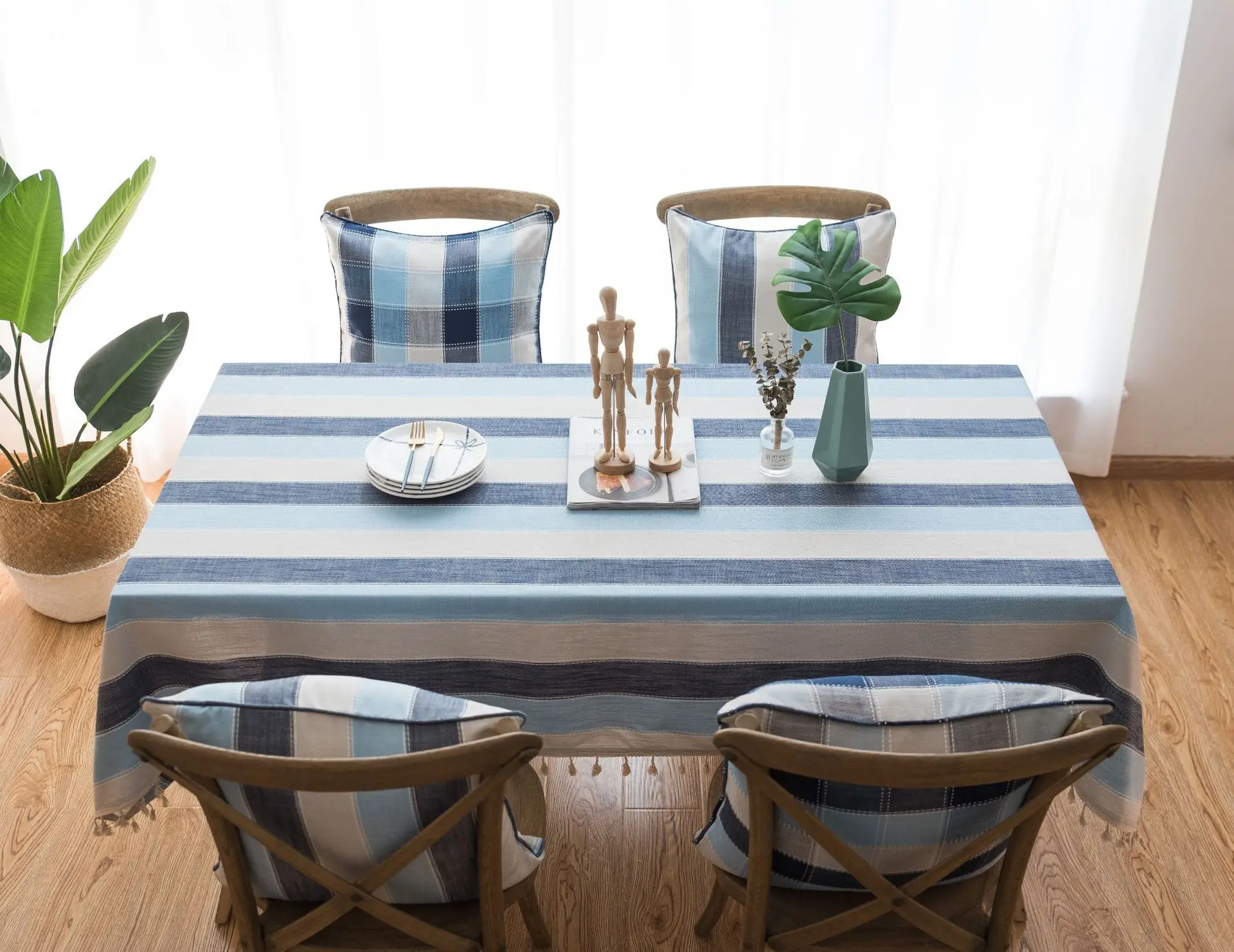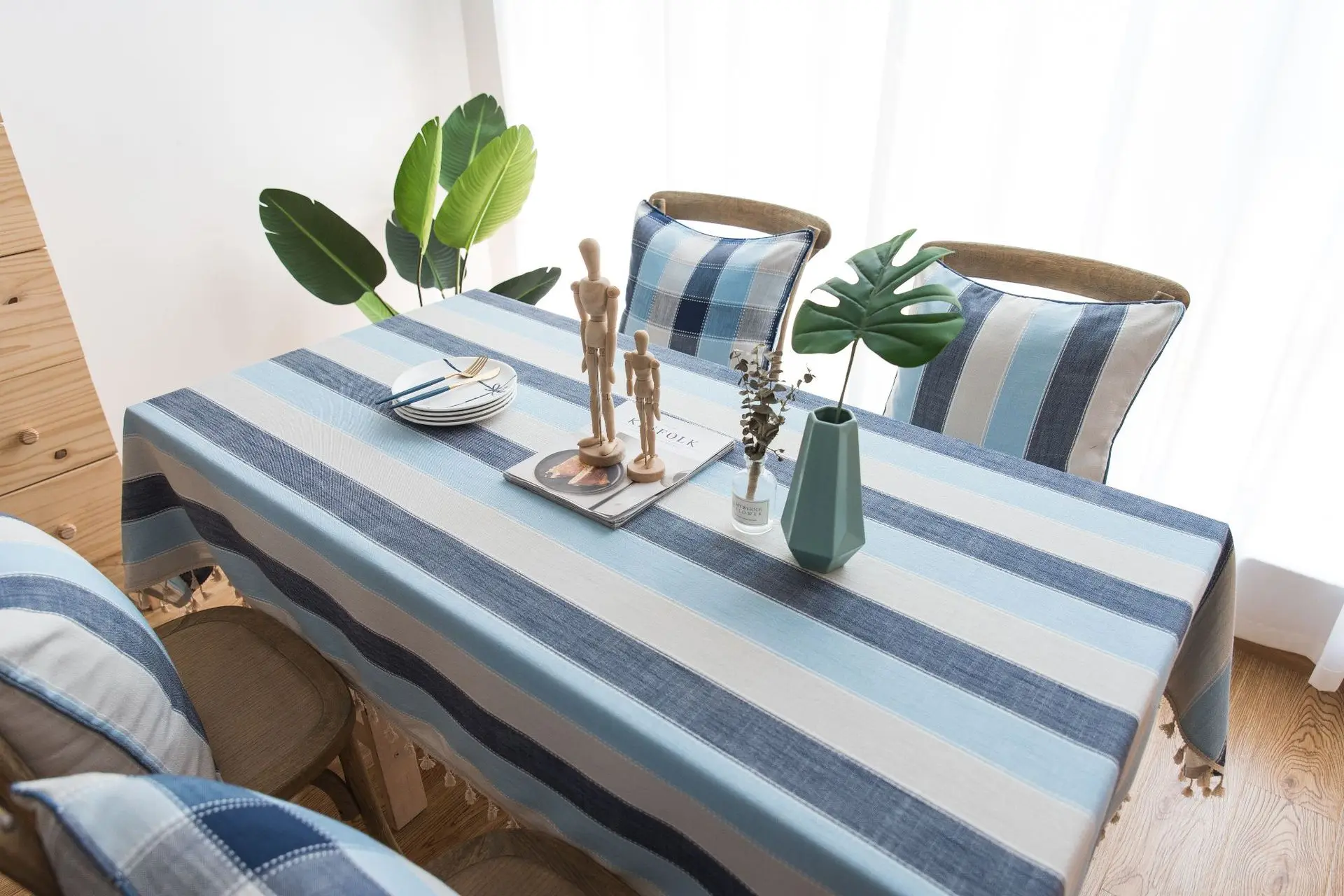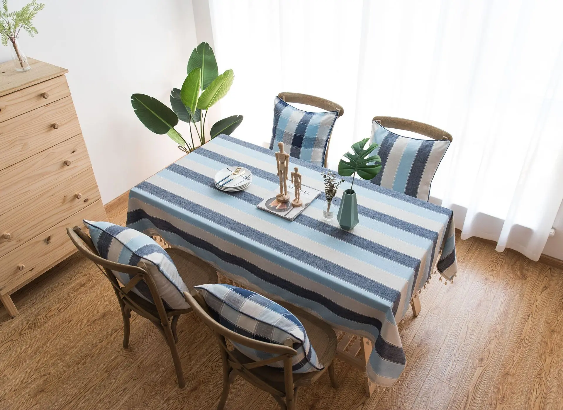 Водонепроницаемая скатерть в синюю полоску, средиземноморская скатерть с кисточками для чайного стола, полотенце, чехол для обеденного стола для украшения дома, кофейного бара
