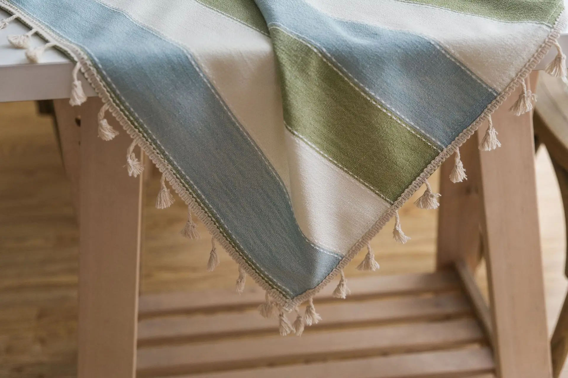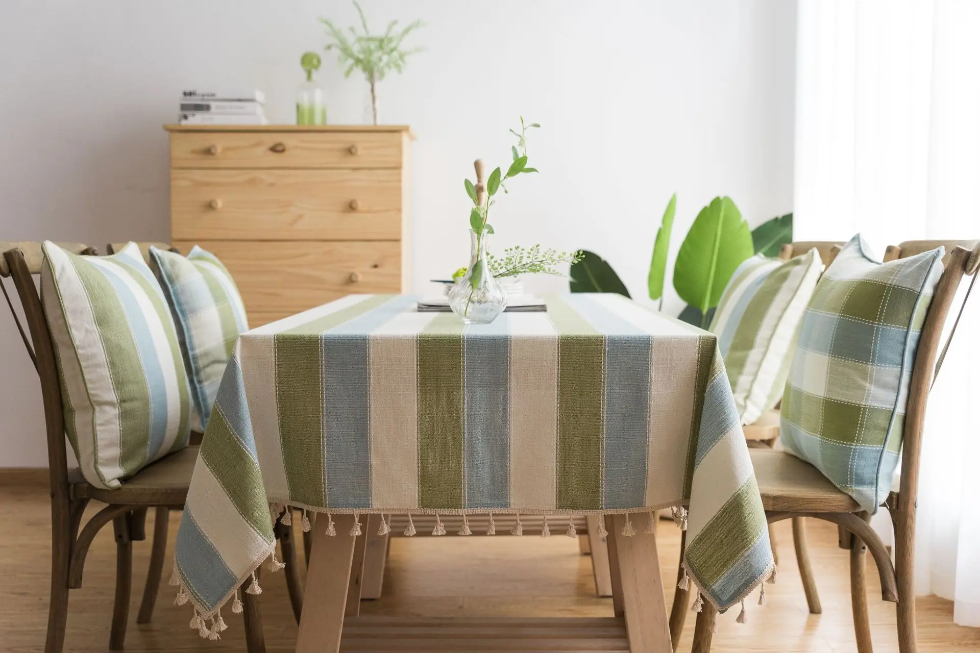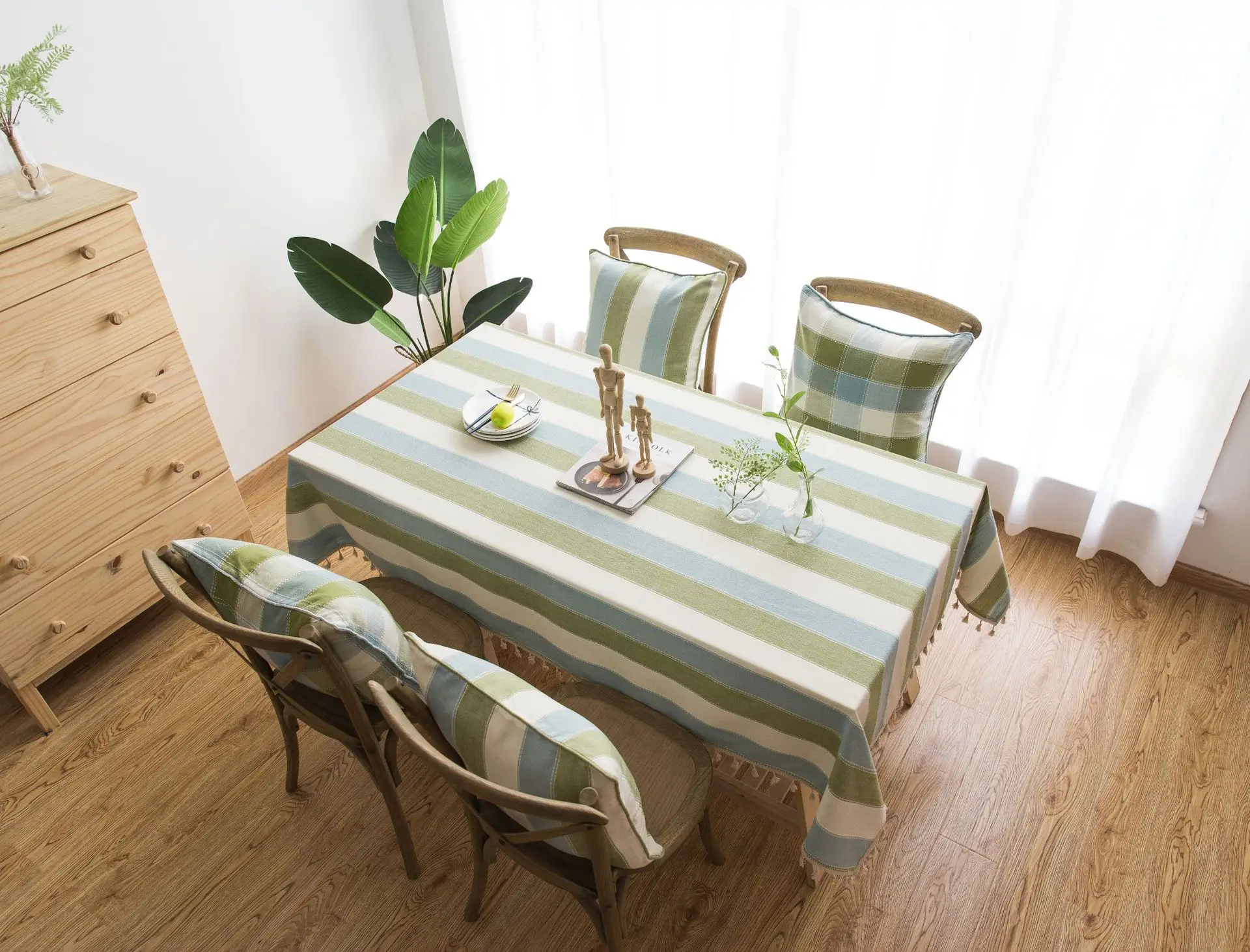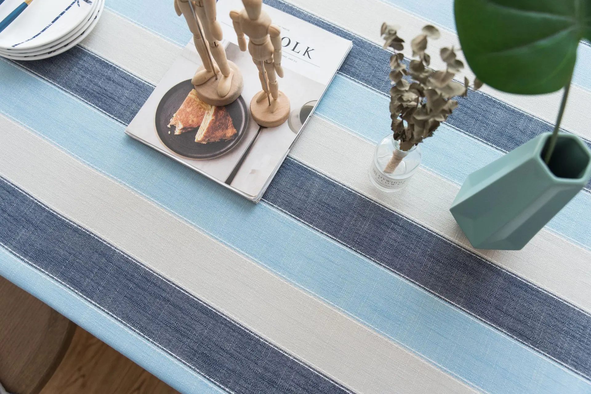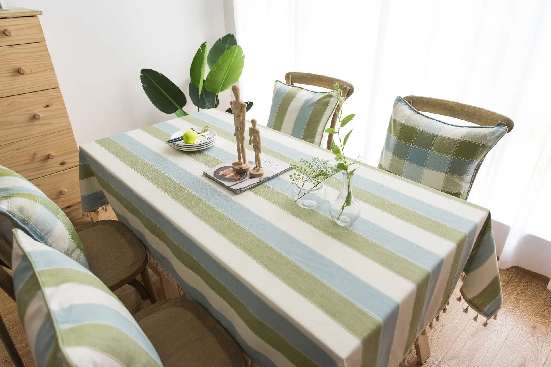 Водонепроницаемая скатерть в синюю полоску, средиземноморская скатерть с кисточками для чайного стола, полотенце, чехол для обеденного стола для украшения дома, кофейного бара