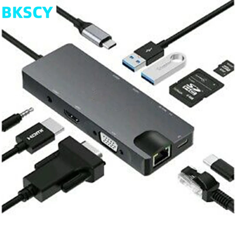9 в 1 взаимный обмен данными между компьютером и периферийными устройствами C концентратор-подходит для macbook pro Micro USB, работа в течение новейший macbook Pro или USB-C устройств с Порты и разъёмы USB-C концентратор (Gigabit Ethernet, usb C зарядки Порты и разъёмы, 4K @ 30Hz HDMI порт, SD/TF кардридер, 3,5 мм аудио разъем и VGA порт и 2 USB 3,0 порт s, Позволяет подключать клавиатуру, мышь, usb-драйвер, внешний диск к MacBook Pro