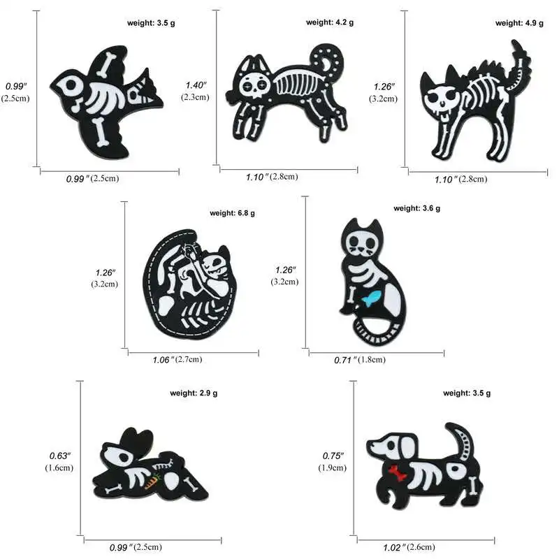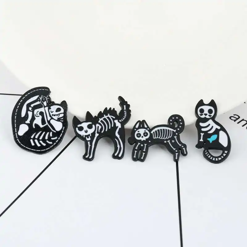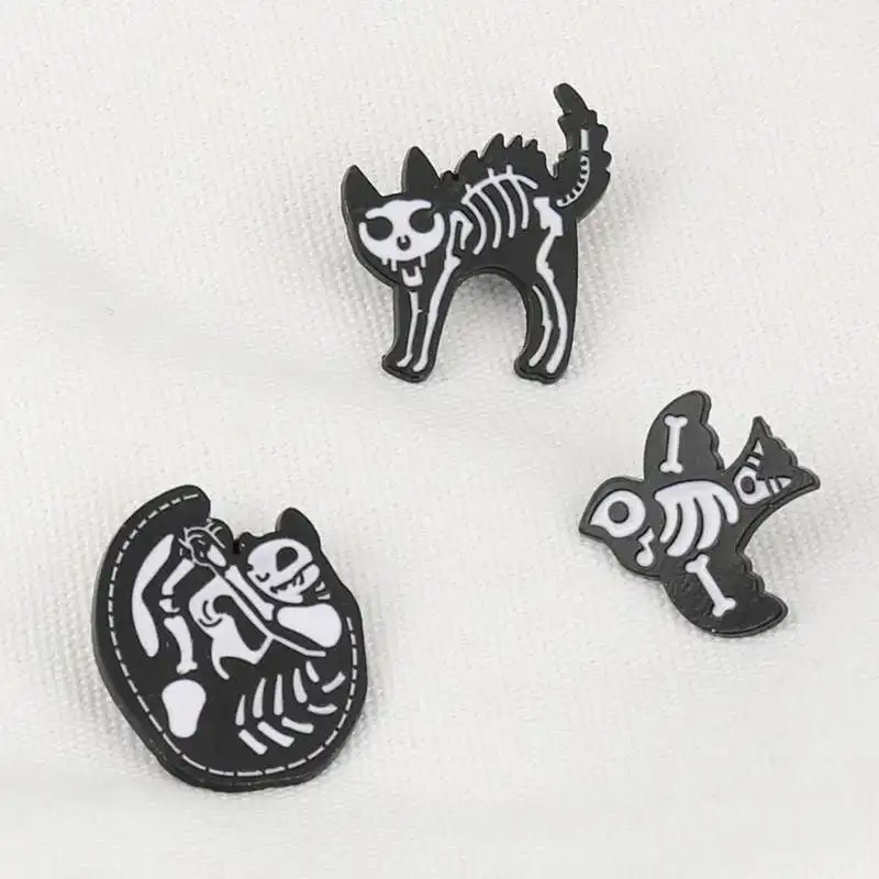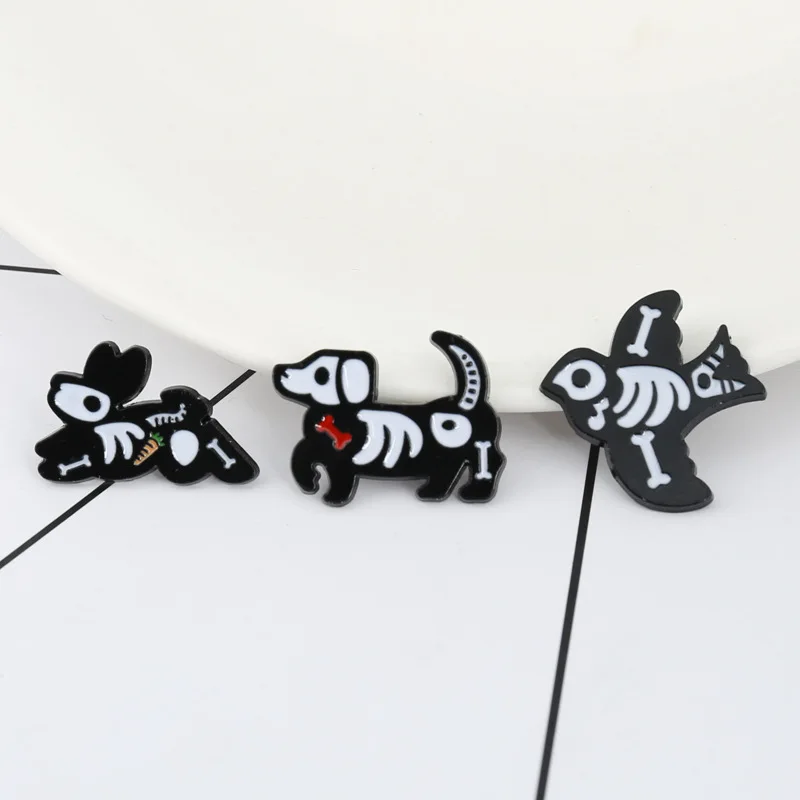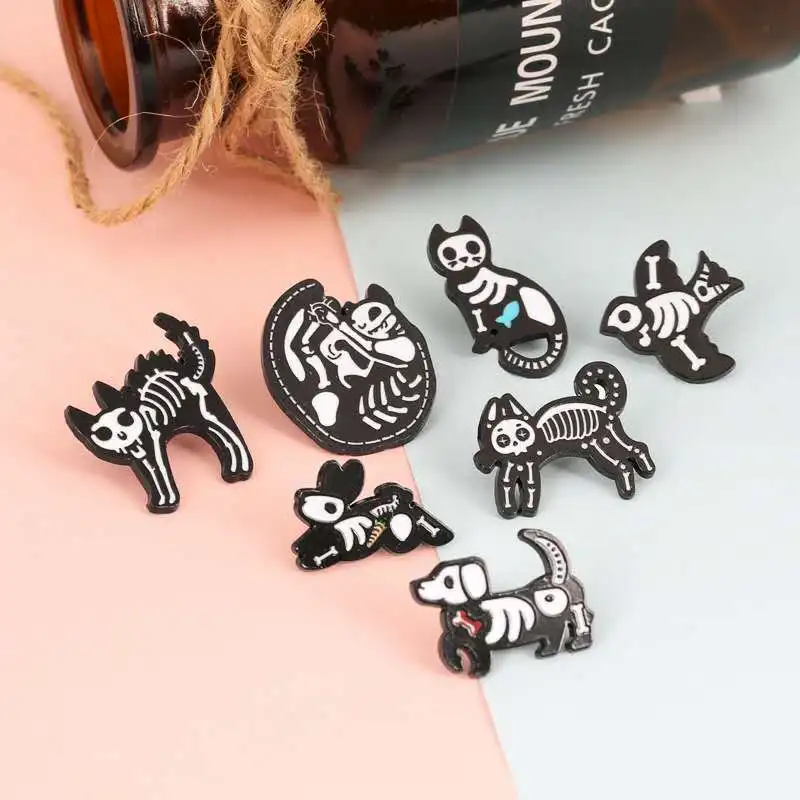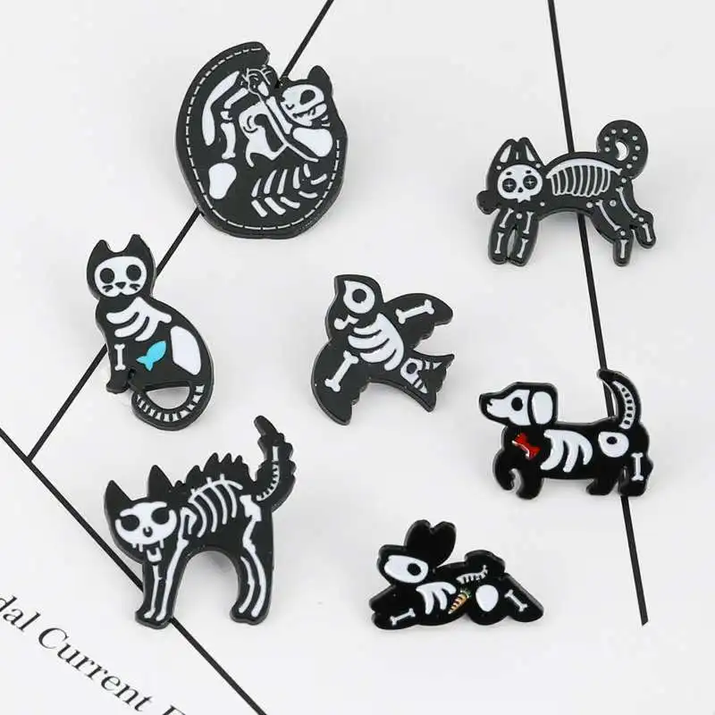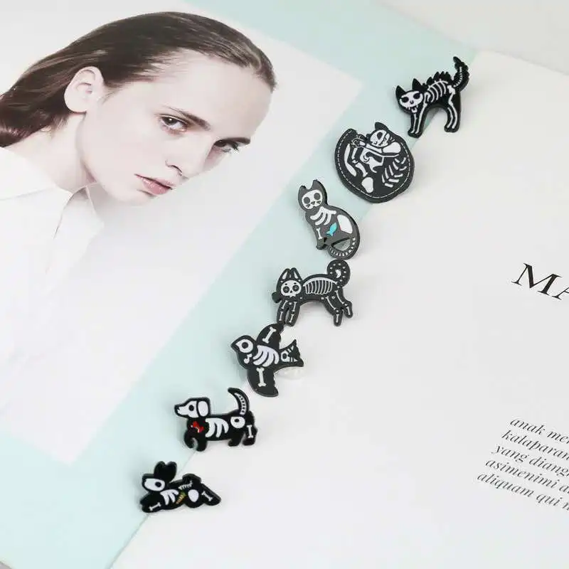 Ретро череп X-ray перспектива брошь с кошкой булавка Мужская и женская одежда рубашка с лацканами черный и белый кролик щенок значок ювелирные изделия