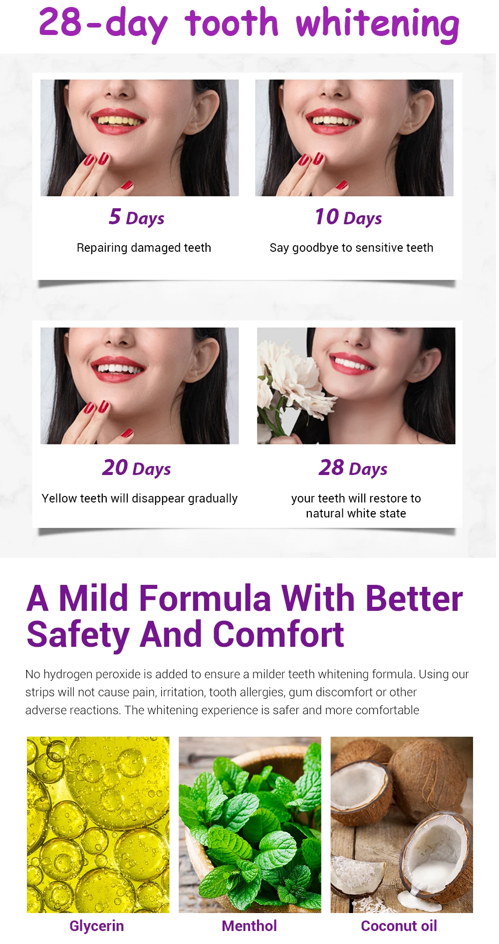 Шаг 3: Носите полоски в течение 60 минут, затем снимите их и снимите краску в рот (Носите ночные зубные отбеливающие полоски в течение 7-8 часов)