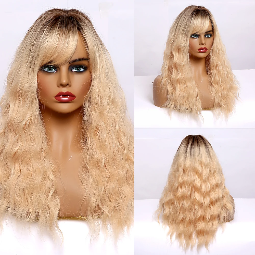 ALAN EATON, средние волнистые парики с челкой для женщин, длинные омберские черные, коричневые, золотистые, медовые, светлые волосы, парик для косплея, синтетический парик для вечеринки