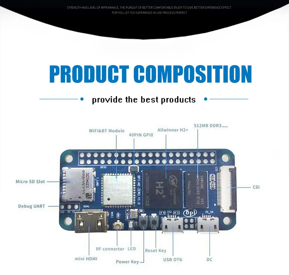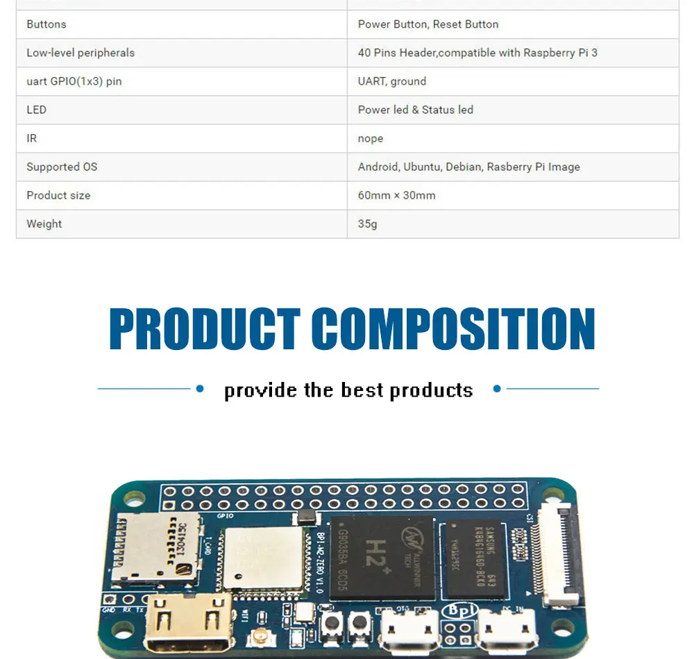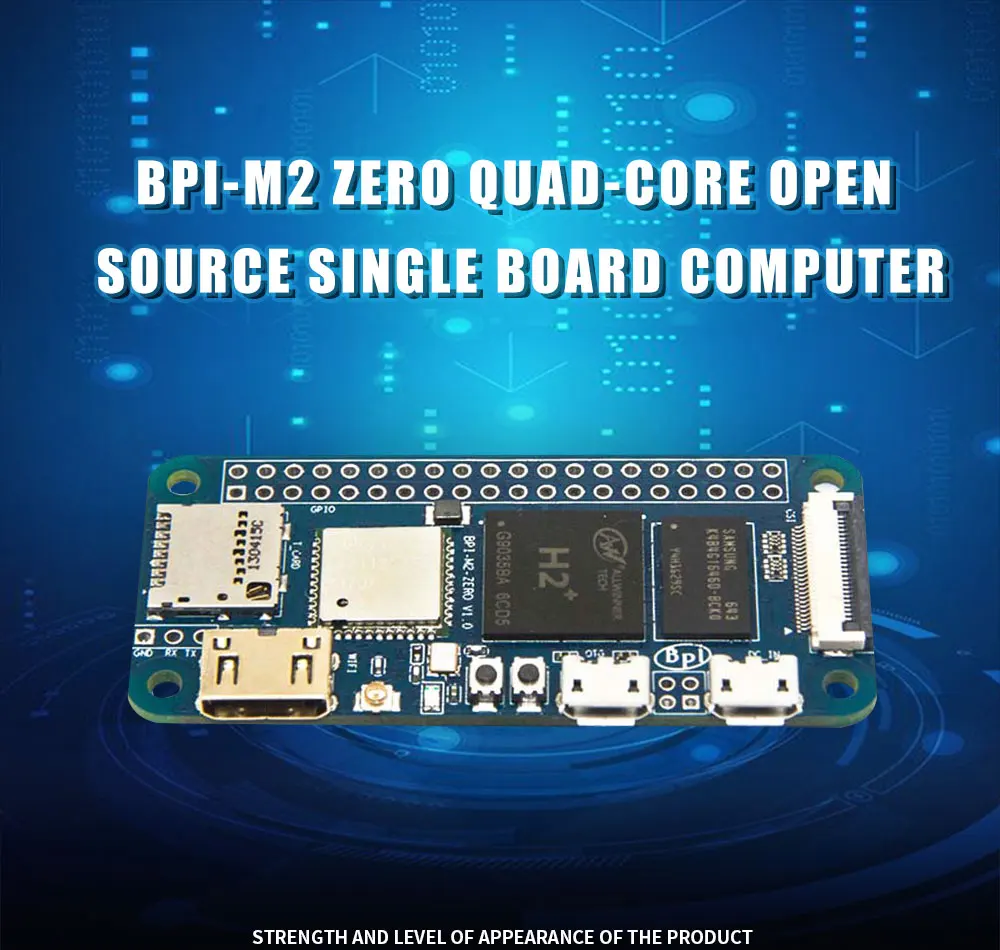 Banana pi BPI-M2 Zero-это чрезвычайно маленький одноплатный компьютер с открытым исходным кодом, разработанный с использованием чипа Allwinner H2 +, или вы можете напрямую использовать Allwinner H3, размер точно такой же, как у Raspberry pi Zero W, размер 60 мм * 30 мм Поддержка встроенных Wi-Fi и Bluetooth, память 512 Мб, Интерфейс Mini HDMI. Banana Pi BPI-M2 Zero поддерживает системы Android, Debian linux, Ubuntu linux, Raspbian и легко разрабатывает Интернет вещей и образовательные приложения.