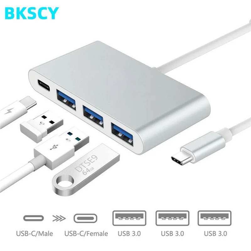 Bkscy Usb c концентратор USB-C для USB3.0 высокое Скорость 4-портовый концентратор Тип USB C 3,1 многопортовый адаптер для MacBook Google Chrome usb-концентратора типа c