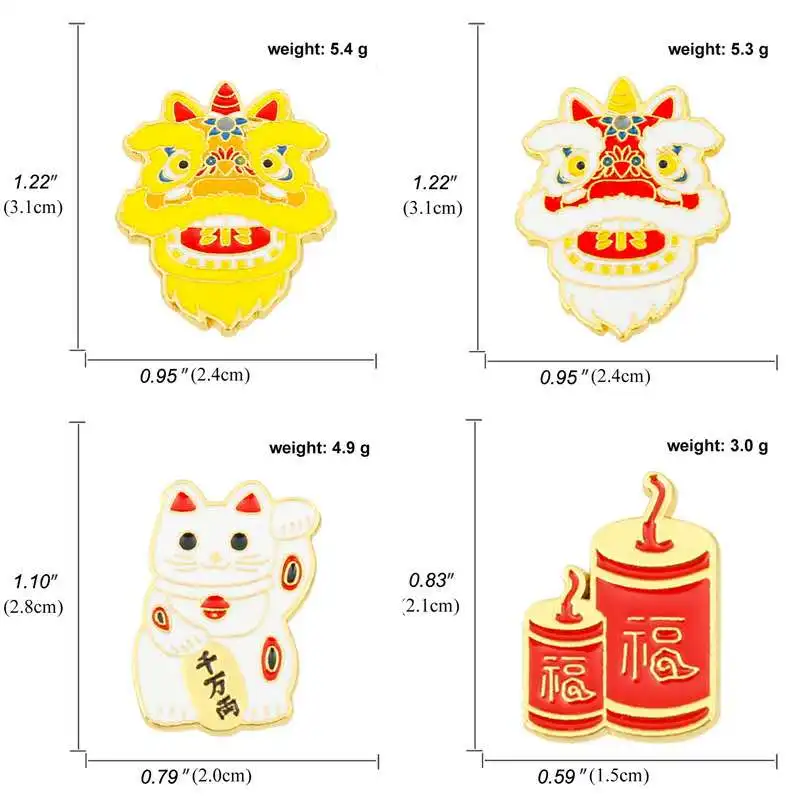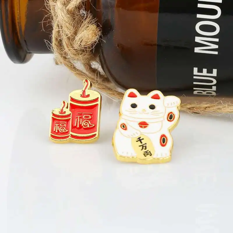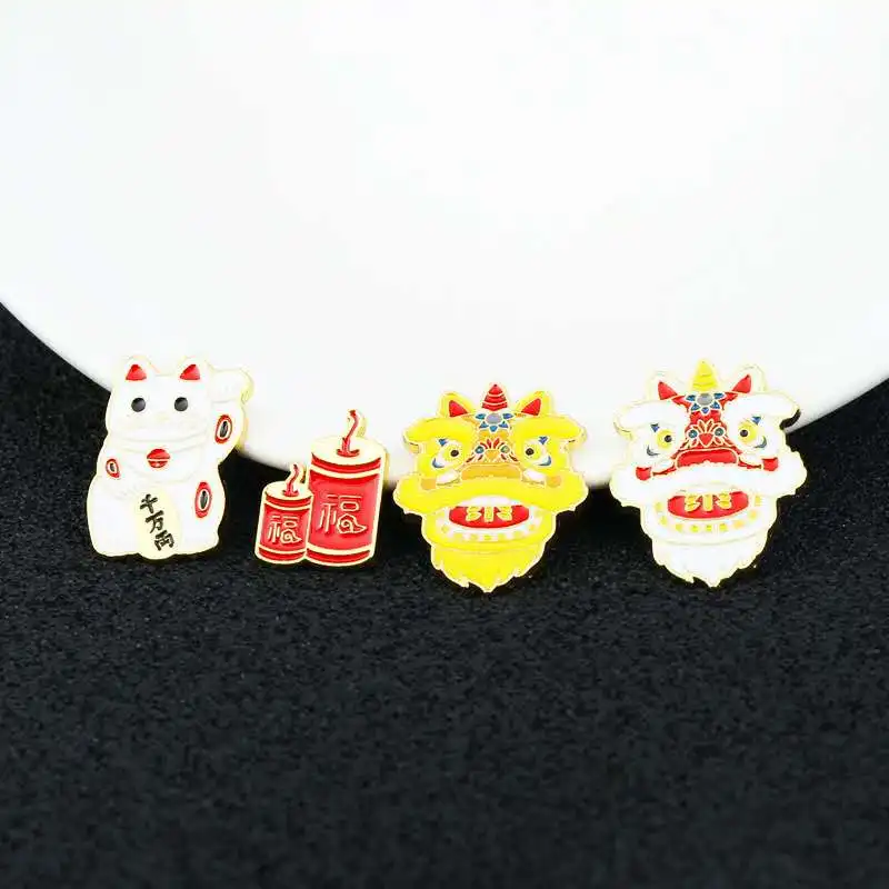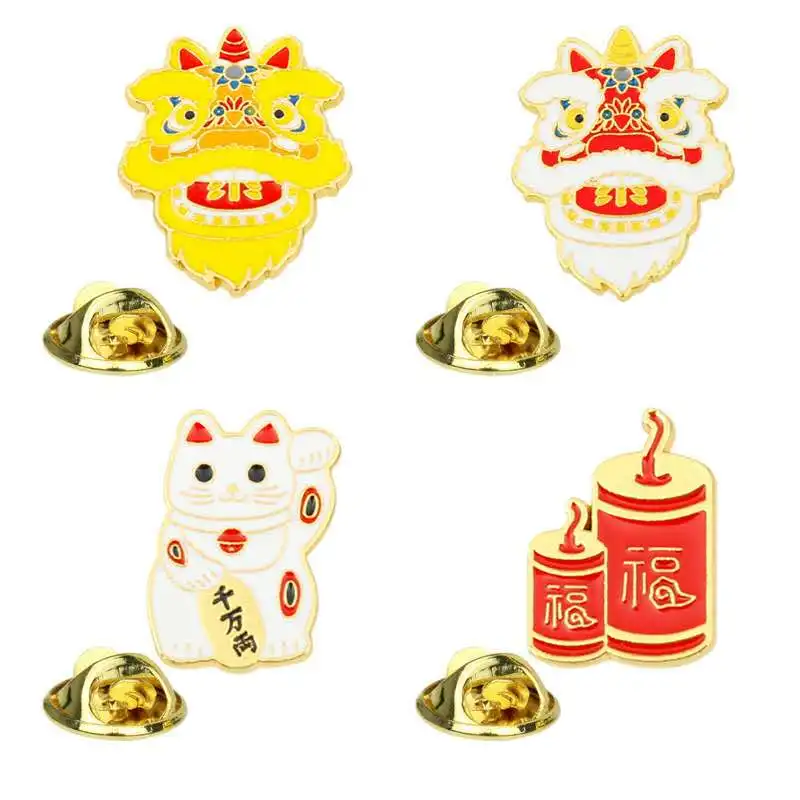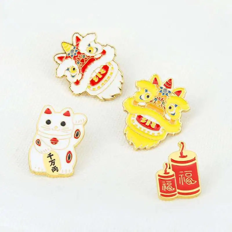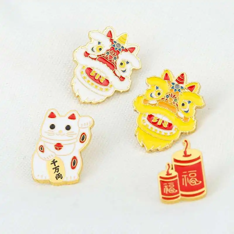 Суперновый продукт, брошь в китайском стиле со львом и котом, петарды, милый праздничный значок на булавке для мужчин и женщин, подарки для друзей