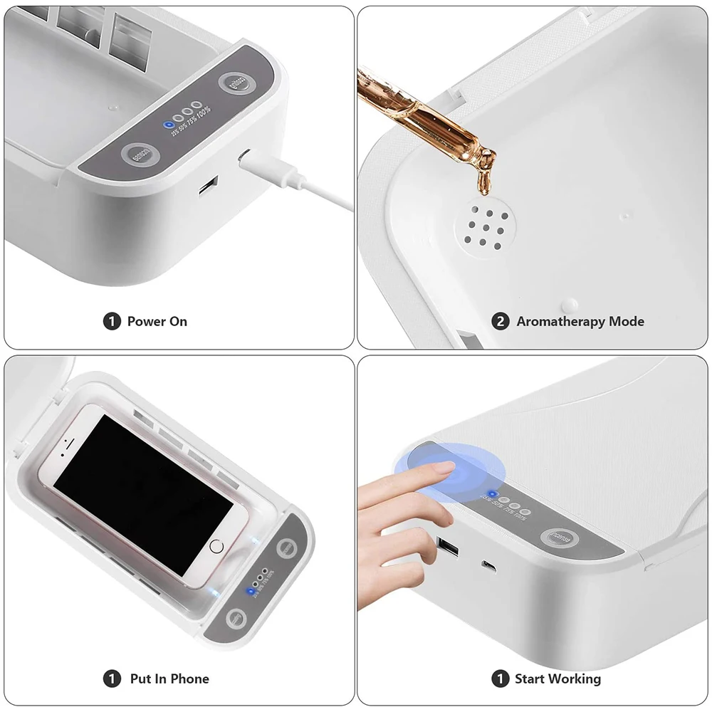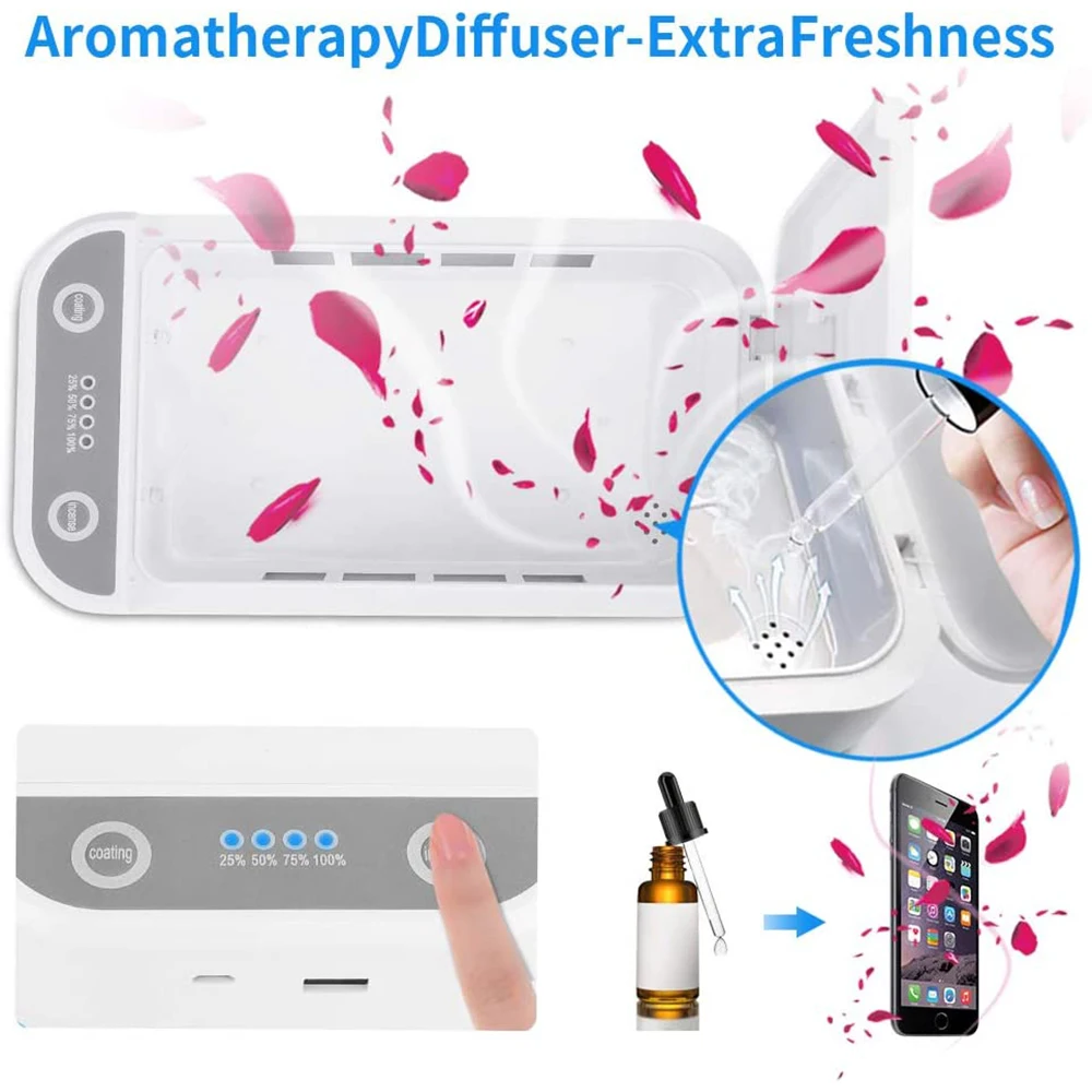 Портативный ультрафиолетовый стерилизатор для дезинфекции сотового телефона с функцией ароматерапии, голосовые подсказки для очистки iPhone Android мобильный телефон зубная щетка салонные инструменты ювелирные часы