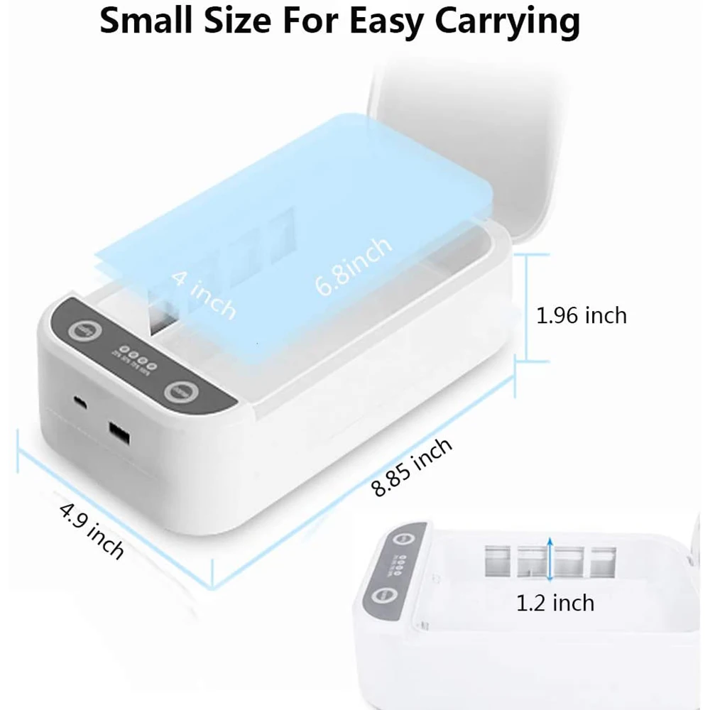 Особенности: УФ-дезинфицирующее средство для мобильного телефона-в очистителях смартфонов Soeland не используется жидкость, тепло или химическое вещество, поэтому безопасно дезинфицировать все, что поместится внутри! Убивая 99.99% микробов, UV-C светильник может добраться до микроорганизмов, которые прячутся в щитах, где даже чистящие салфетки не достигают. Простой в использовании-нажмите переключатель покрытия для начала стерилизации с индикаторными лампами держит зеленый; Машина остановится автоматически через 5 минут во время очистки. Большое дезинфицирующее пространство-Soeland Дезинфицирующее Средство подходит для всех телефонов размером ниже 6,5 дюйма. Это может быть не только для вашего телефона, ювелирных изделий, часов, кредитных карт и ключей, но и так далее, если они находятся в пределах допустимого диапазона размеров. Диффузор для ароматерапии-Дополнительная свежесть, поместите немного эфирного масла на входе ароматерапии, чтобы начать иметь ароматический увлажнитель для ваших телефонов, и ваше устройство будет пахнуть очень замечательно. Выбор подарка-представлен в стильной коробке, это идеальный подарок для germaphobes и обязательный гаджет для тех, кто заботится о гигиене. Кроме того, идеальный подарок для germaphobe в вашей жизни. Лучший Праздничный Рождественский подарок для отца, семьи и друзей. Спецификация: Наименование товара: портативный УФ-стерилизатор Подходит для смартфона до 6,5 дюймов Номинальное напряжение: DC5V Входной ток: 1-2A Мощность УФ-светильник: 2x1W Макс. Рабочая мощность: 9 Отключаемая частота: 60 (Гц) Длина УФ-волны: 253,7 нм Материал: пластик + электронные компоненты Цвет: белый Внешний размер изделия: 218x123x53мм Внутренний размер: 180x100x22мм