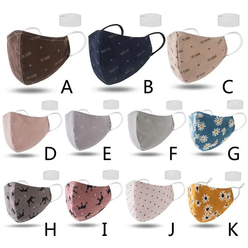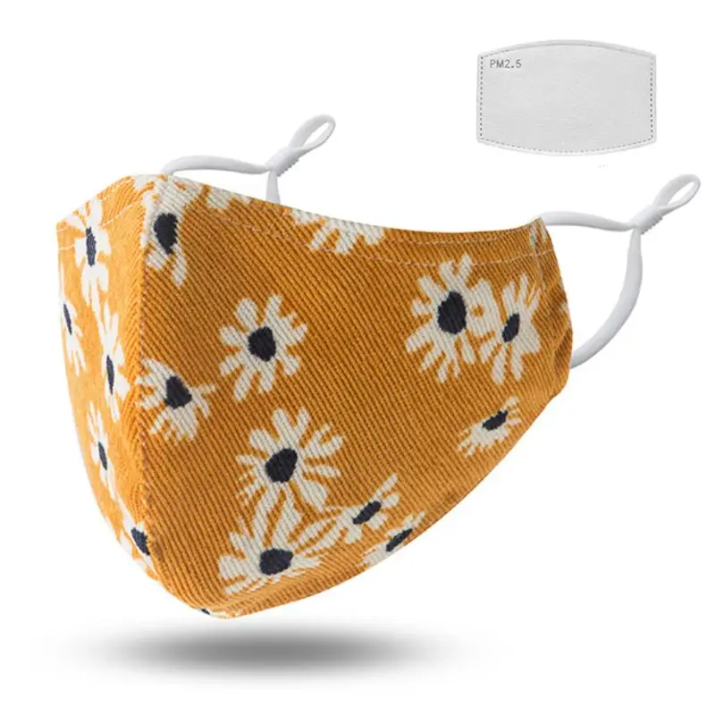 Взрослый 3-слойные фанерные многоразовая хлопковая маска для губ с 1 фильтр Цветочный принт пыле стирка уход за кожей лица крышка