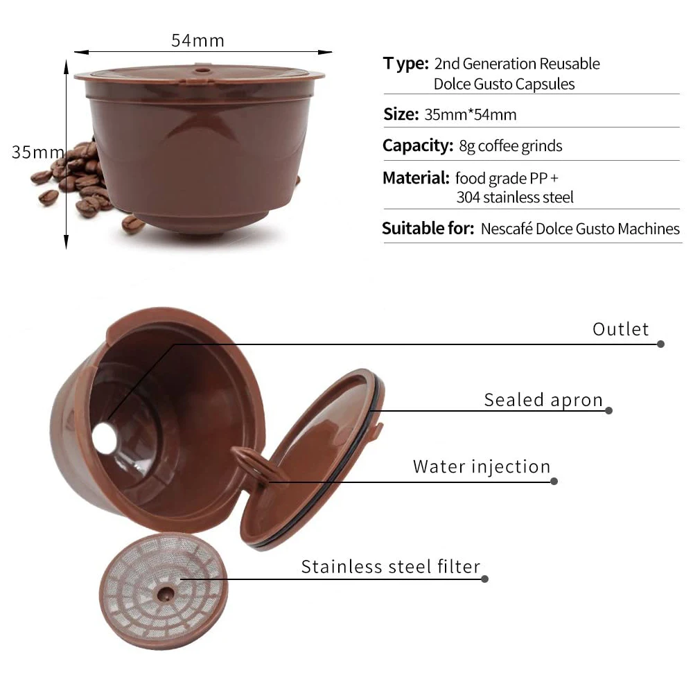【Высокое качество материалов 】Многоразовая кофейная капсула изготовлена из пищевого пластика PP и высококачественной нержавеющей стали 304, безопасна в использовании.