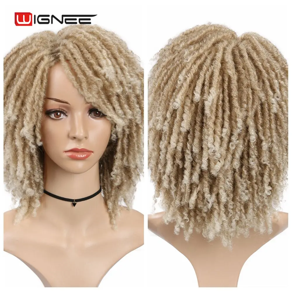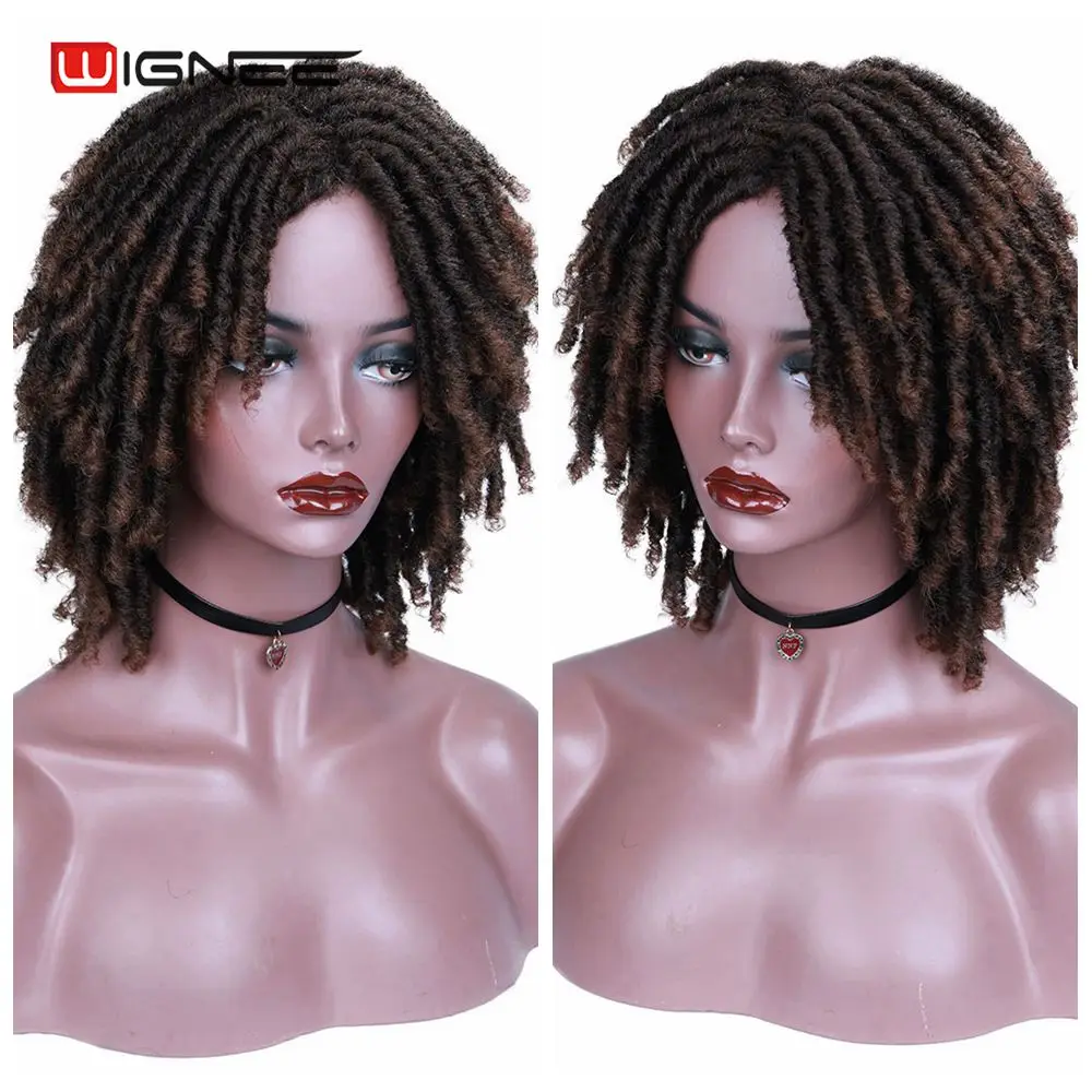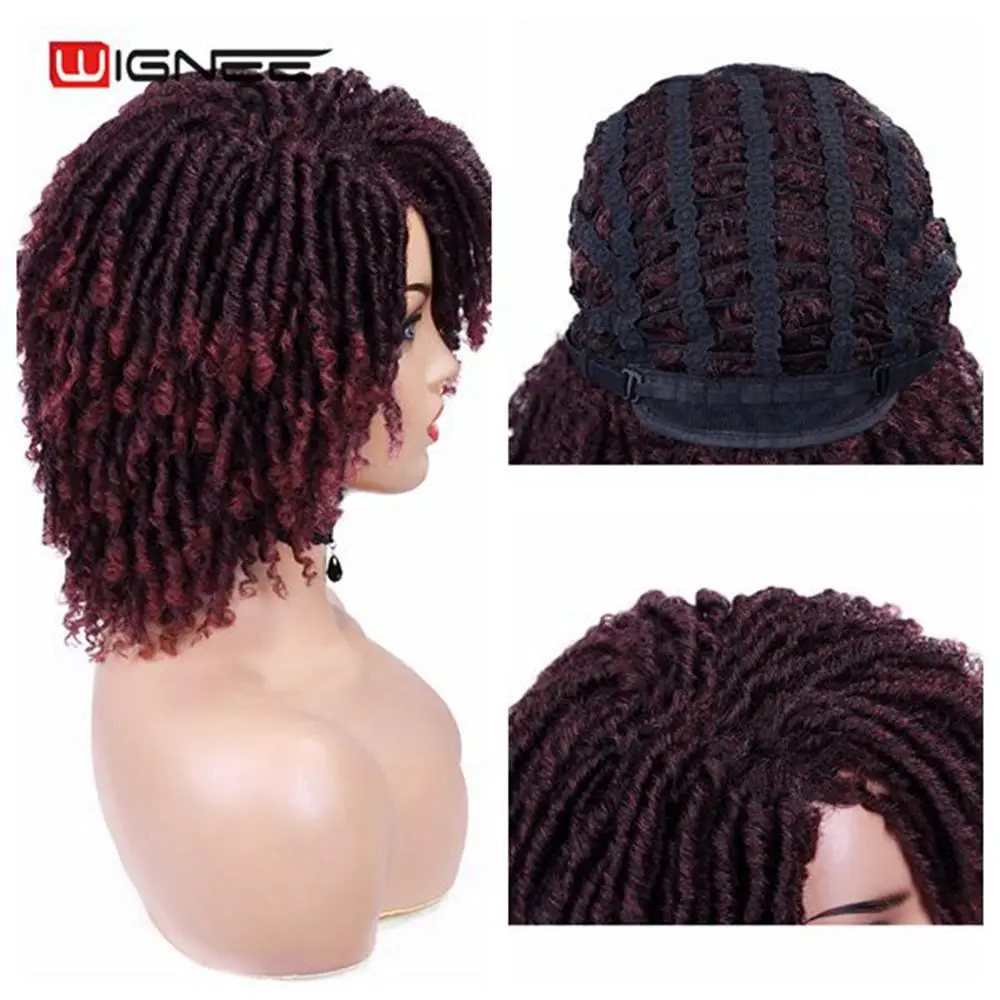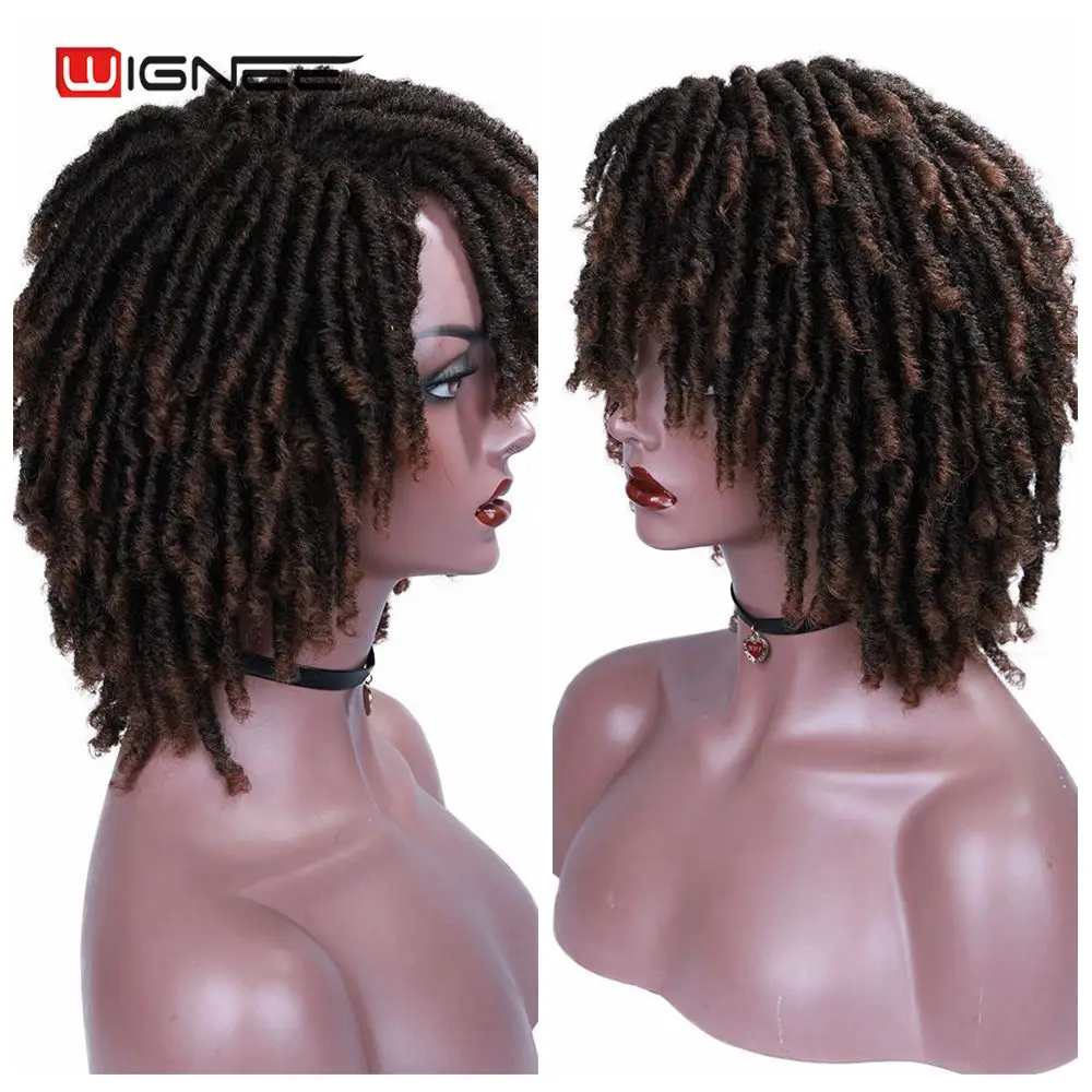 Короткие коричневые синтетические парики Wignee, дредлоки, плетеный вязаный крючком термостойкий крученый парик для чернокожих женщин