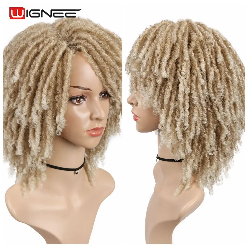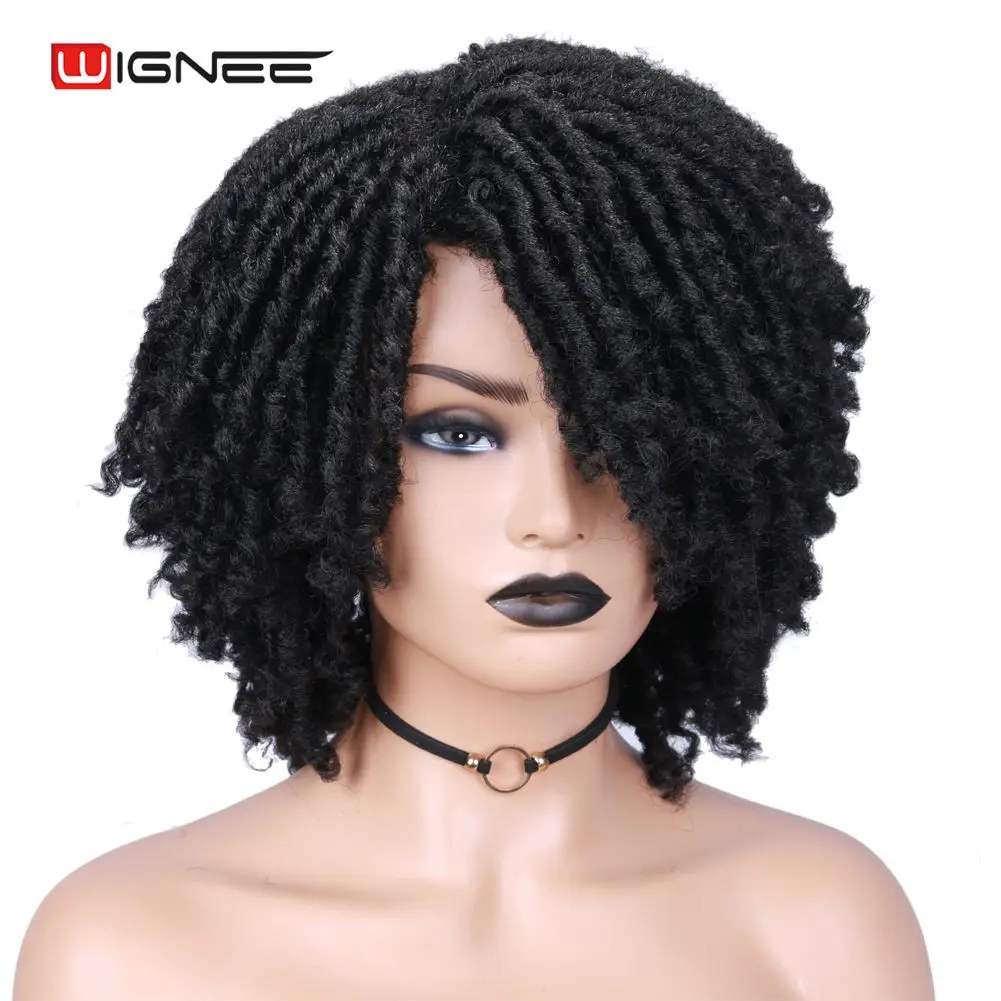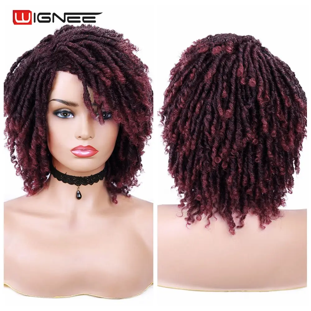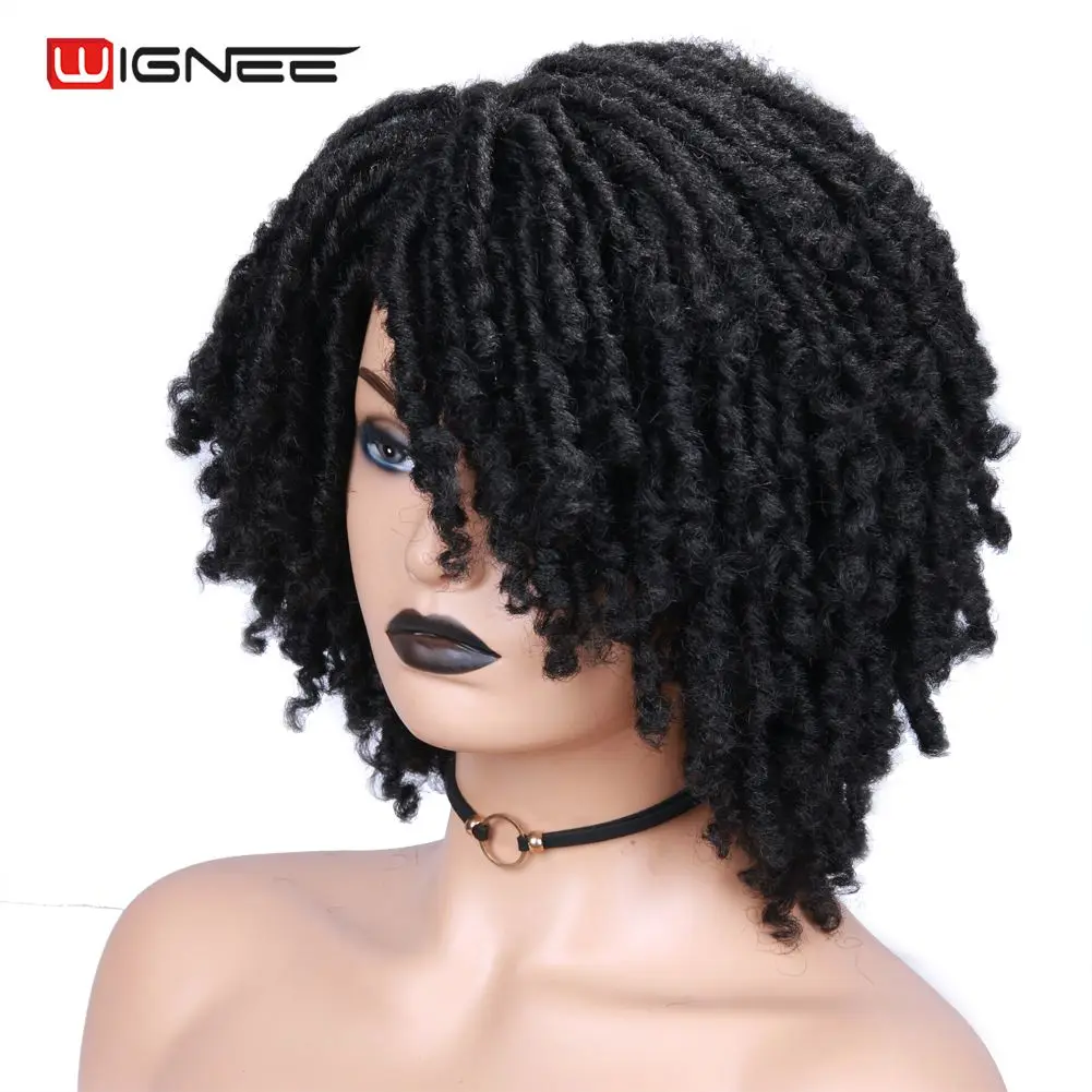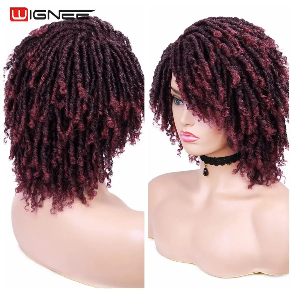 Короткие коричневые синтетические парики Wignee, дредлоки, плетеный вязаный крючком термостойкий крученый парик для чернокожих женщин