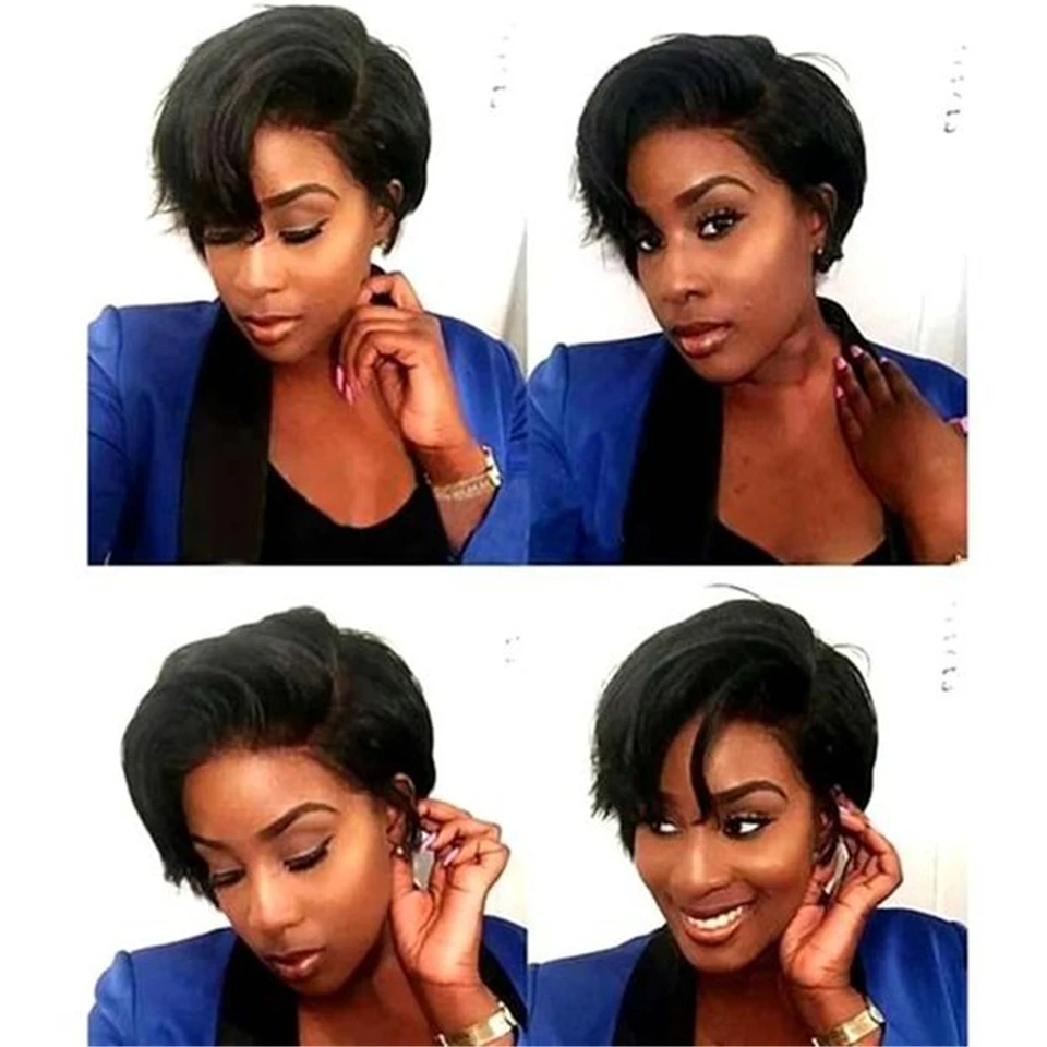 Парик Funmi для стрижки Пикси, прямой парик, парик для всей машины, малазийский парик Пикси, парики из натуральных волос, Короткие парики боб для чернокожих женщин