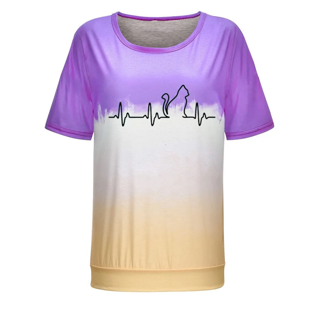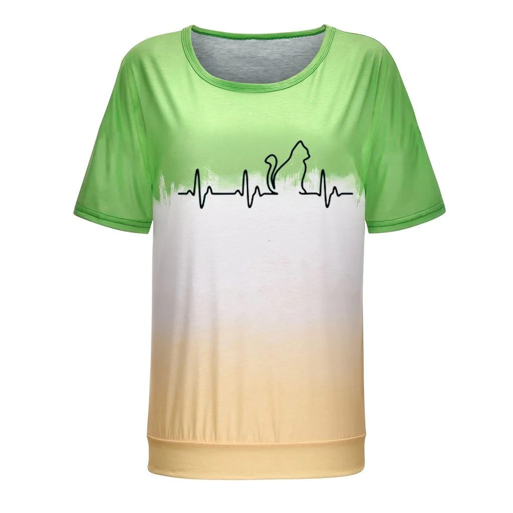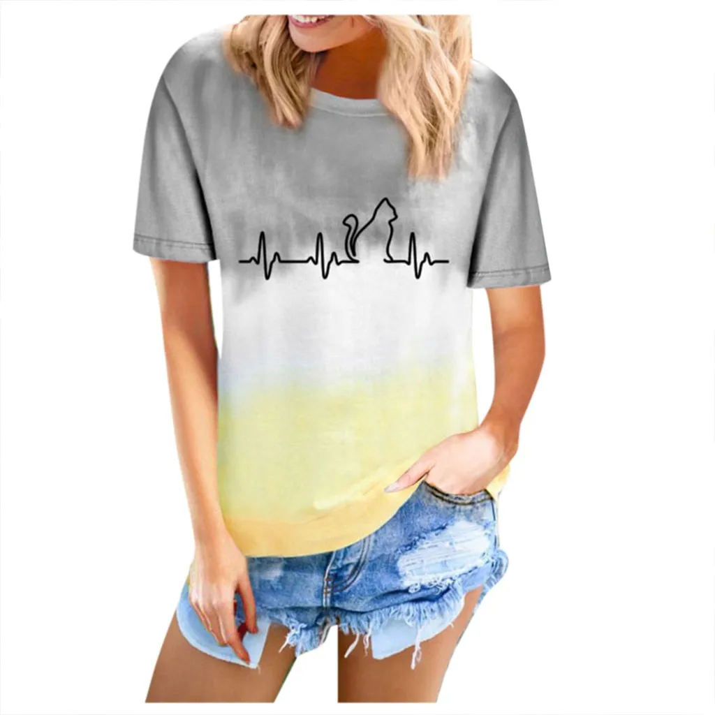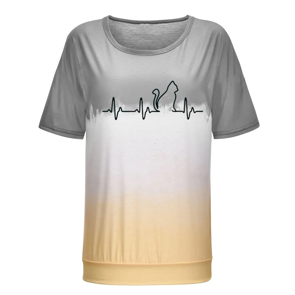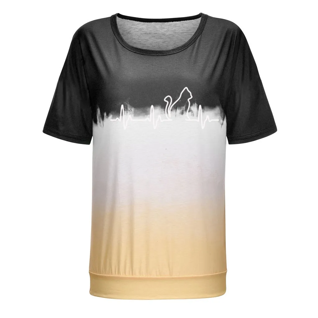 Футболки размера плюс, женская футболка с круглым вырезом, футболка с коротким рукавом и принтом в виде котика, повседневные свободные футболки