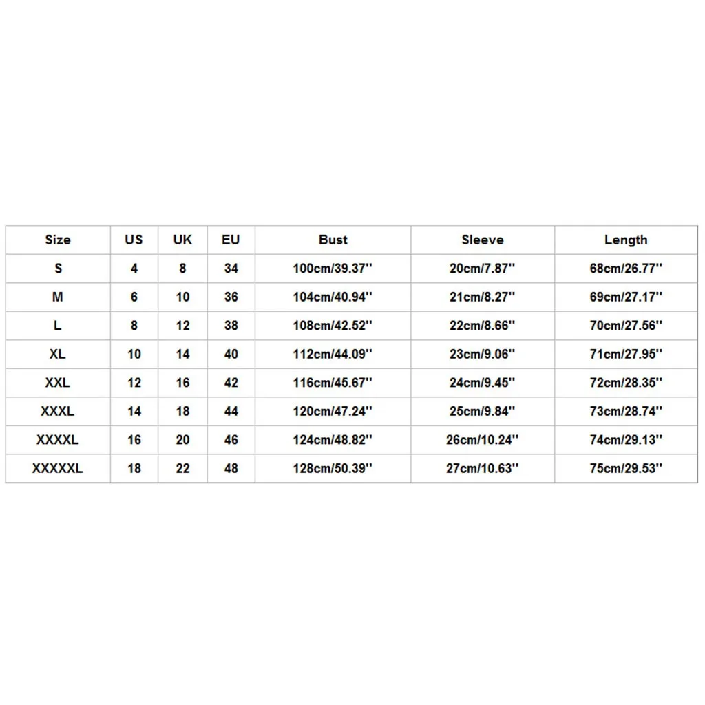 Размер США Великобритания ЕС Бюст Рукав Длина S 4. 8 34 100 см/39,37'' 20 см/7,87'' 68 см/26,77'' М 6 10 36 104 см/40,94'' 21 см/8,27'' 69 см/27,17'' L 8 12 38 108 см/42,52'' 22 см/8,66'' 70 см/27,56'' XL 10 14 40 112 см/44,09'' 23 см/9,06'' 71 см/27,95'' XXL 12 16 42 116 см/45,67'' 24 см/9,45'' 72 см/28,35'' XХХL 14 18 44 120 см/47,24'' 25 см/9,84'' 73 см/28,74'' XXXXL 16 20 46 124 см/48,82'' 26 см/10,24'' 74 см/29,13'' XXXXXL 18 22 48 128 см/50,39'' 27 см/10,63'' 75 см/29,53''