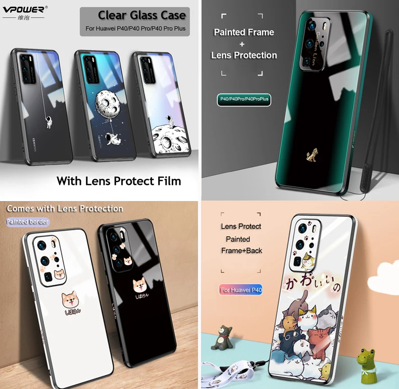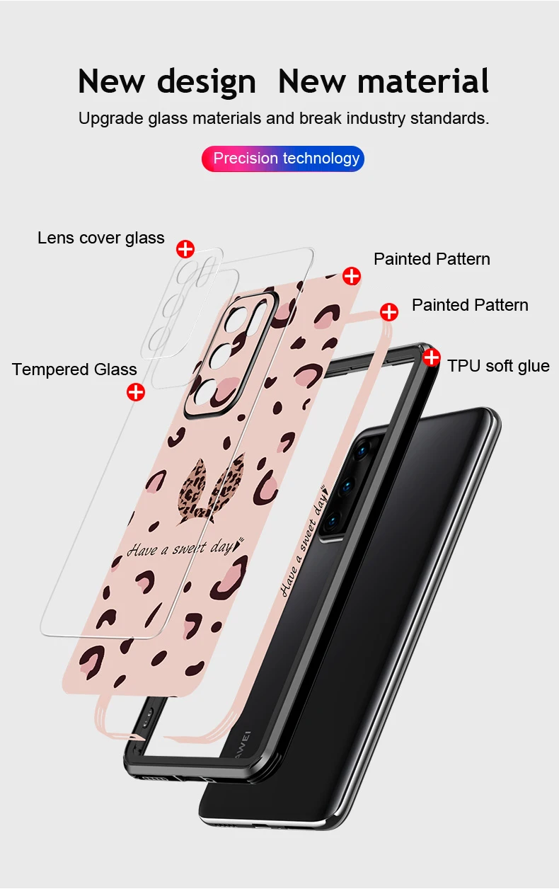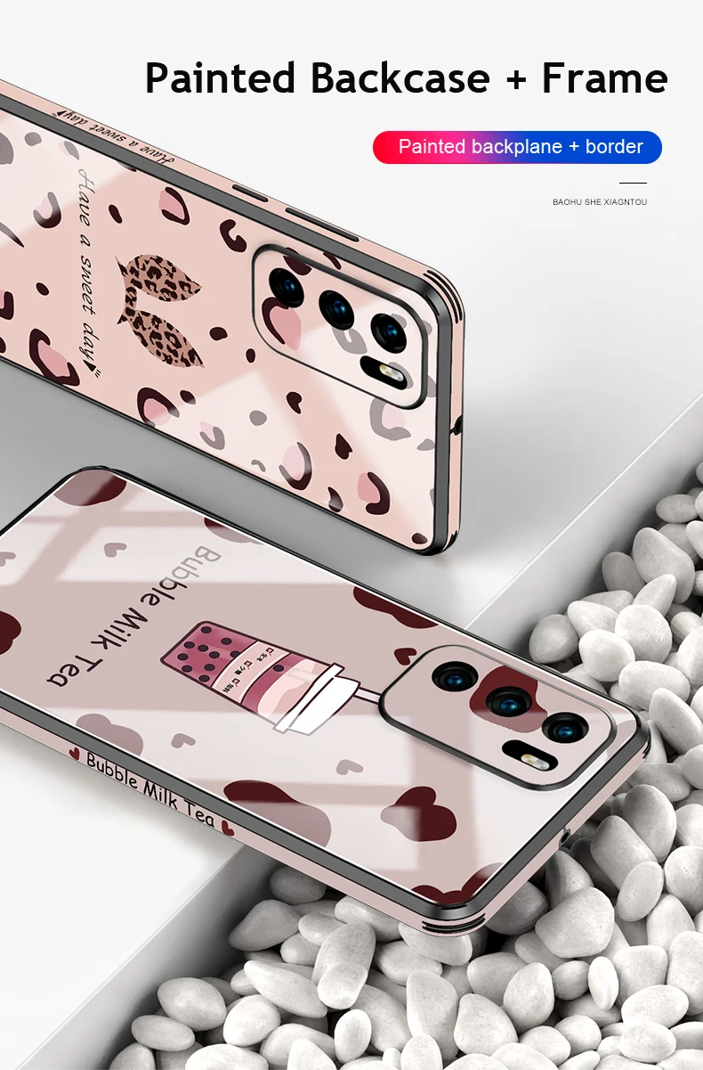 Окрашенный чехол из закаленного стекла + рамка для Huawei P40 Pro, прозрачные розовые Чехлы для телефона