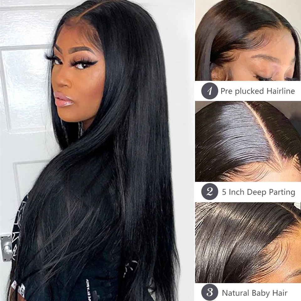 Ali Annabelle Straight Human Hair Wigs 4x4 Lace Closure Wig Pre Plucked Hairline 13x5x1 T Part Lace Wig Straight Front Lace Wigs