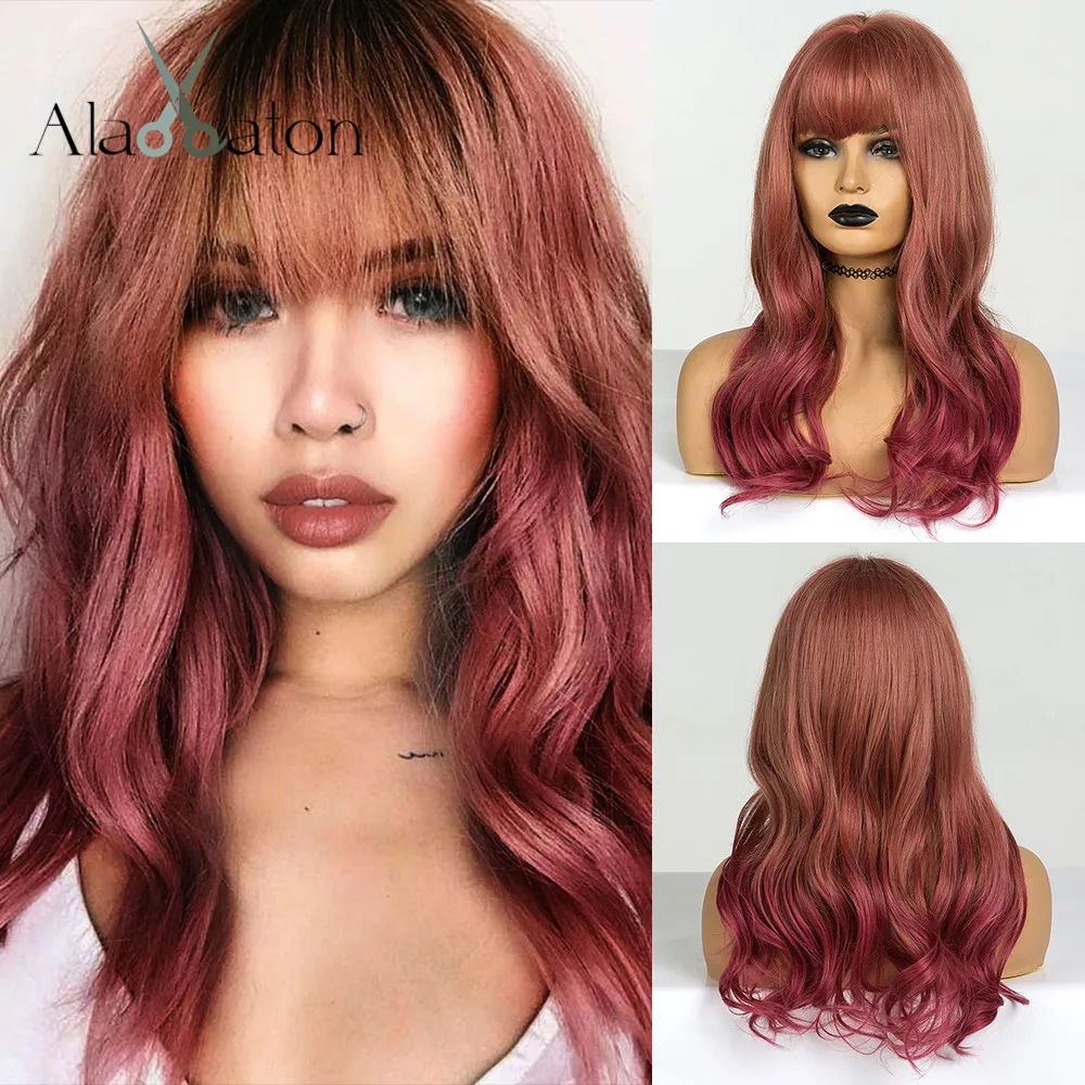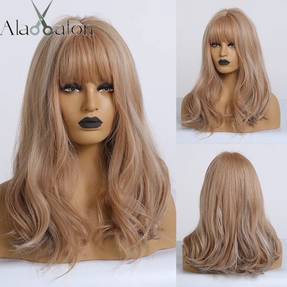 ALAN EATON, длинные натуральные волнистые парики для женщин, коричневые, светлые парики с выделениями, средняя часть, синтетические волосы, парики для косплея, вечерние