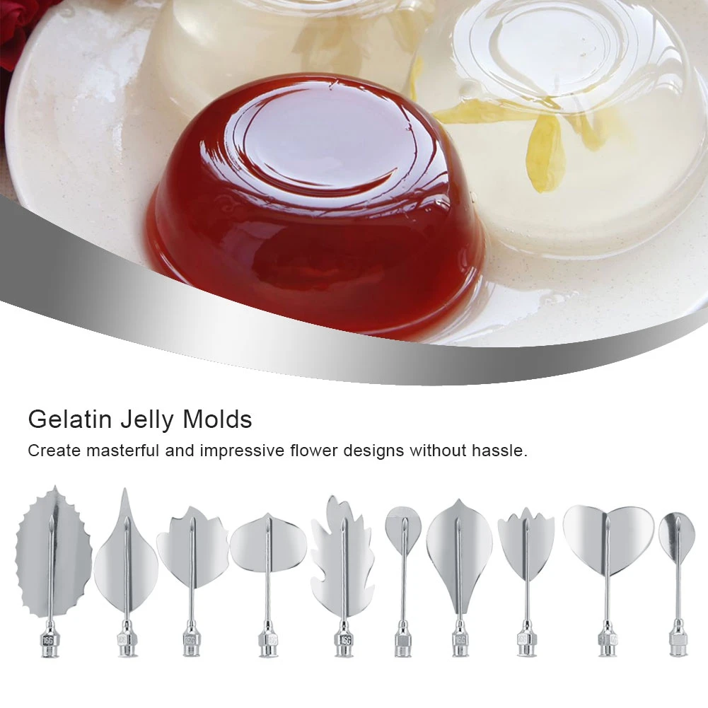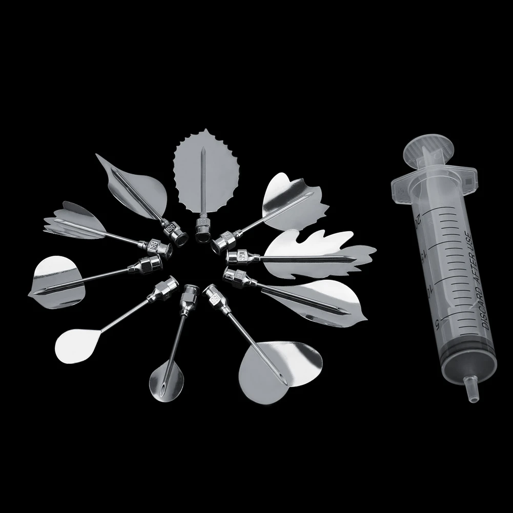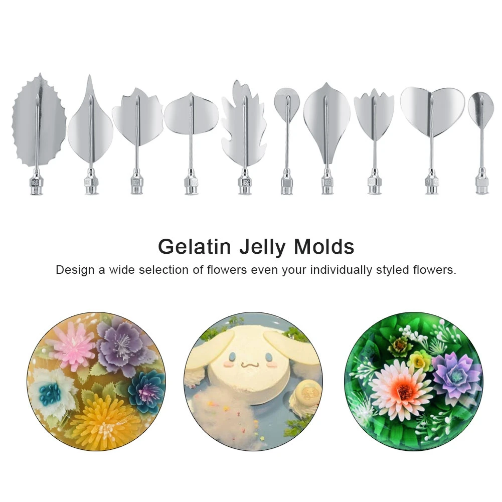 11Pcs/set 3D Gelatin Jellys Art Pudding Flower Decoration Mold Needle Tools Stainless Steel Nozzle Syringe Cake Decorating Tools