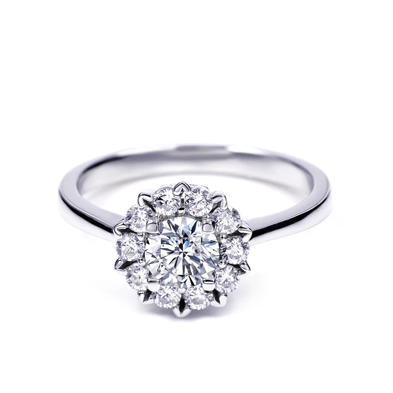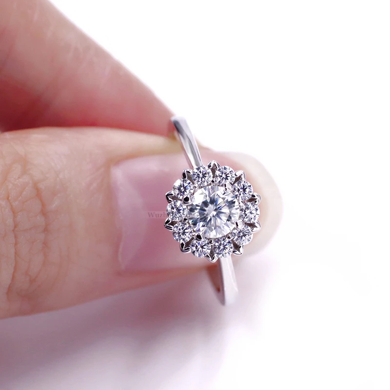 Классические женские кольца из серебра 925 пробы с бриллиантами Moissanite, модное свадебное кольцо 2021, Трендовое кольцо с драгоценными камнями, подарок, 5 мм круглый камень с блестящей огранкой с 10 шт. боковыми камнями превращается в эту красивую форму цветка уникальный дизайн Навсегда блестит и сверкает вместе с вами!