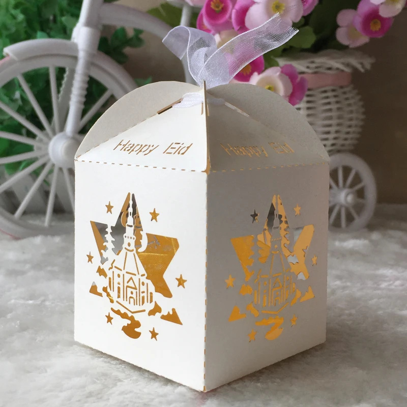 100 шт./лот Бесплатная доставка жемчужная Бумага Ремесло Рамадан счастливое украшение ИД с бесплатной лентой подарочная бумага мини конфетная коробка сумка