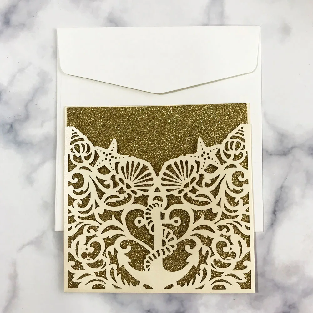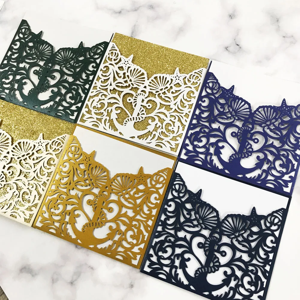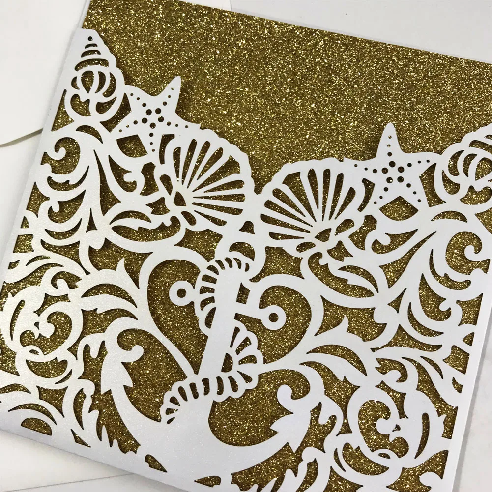 100pcs laser cut Sea Horse Wedding invitation cards Birthday Party place seat name cards Baby shower party Table decoration