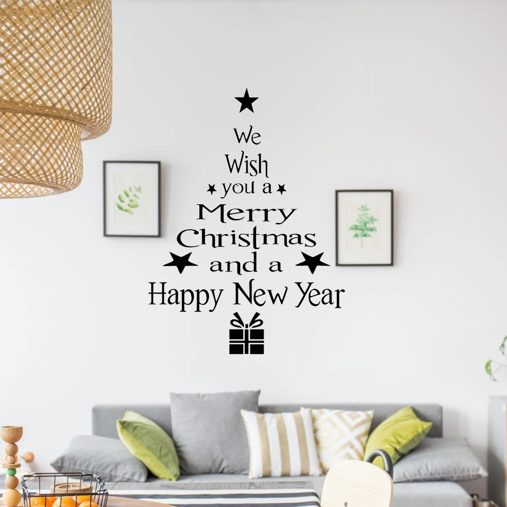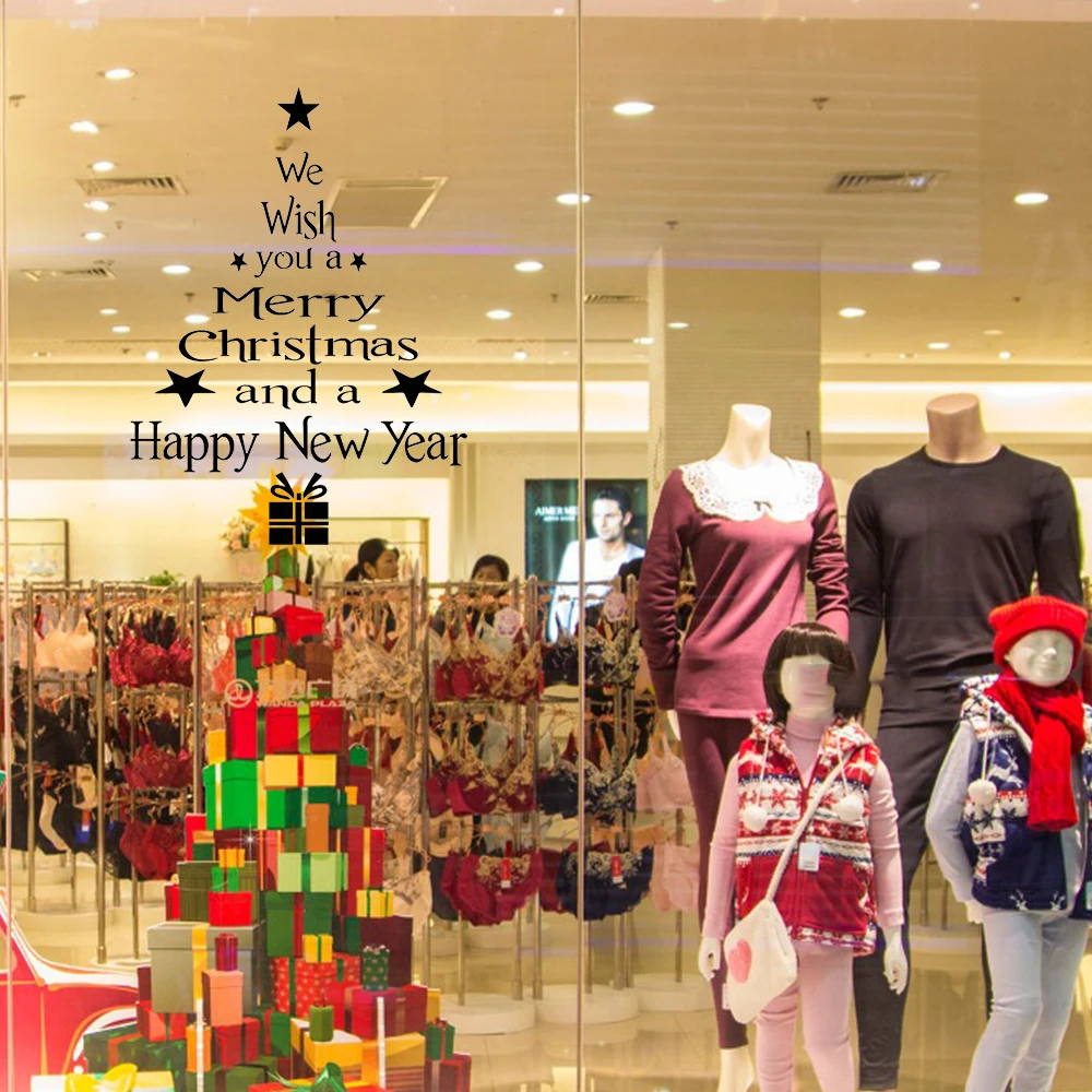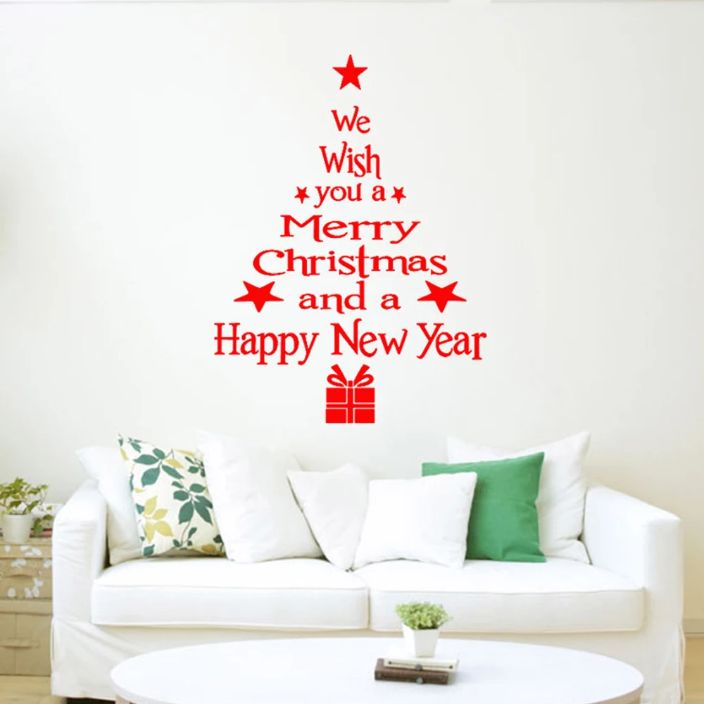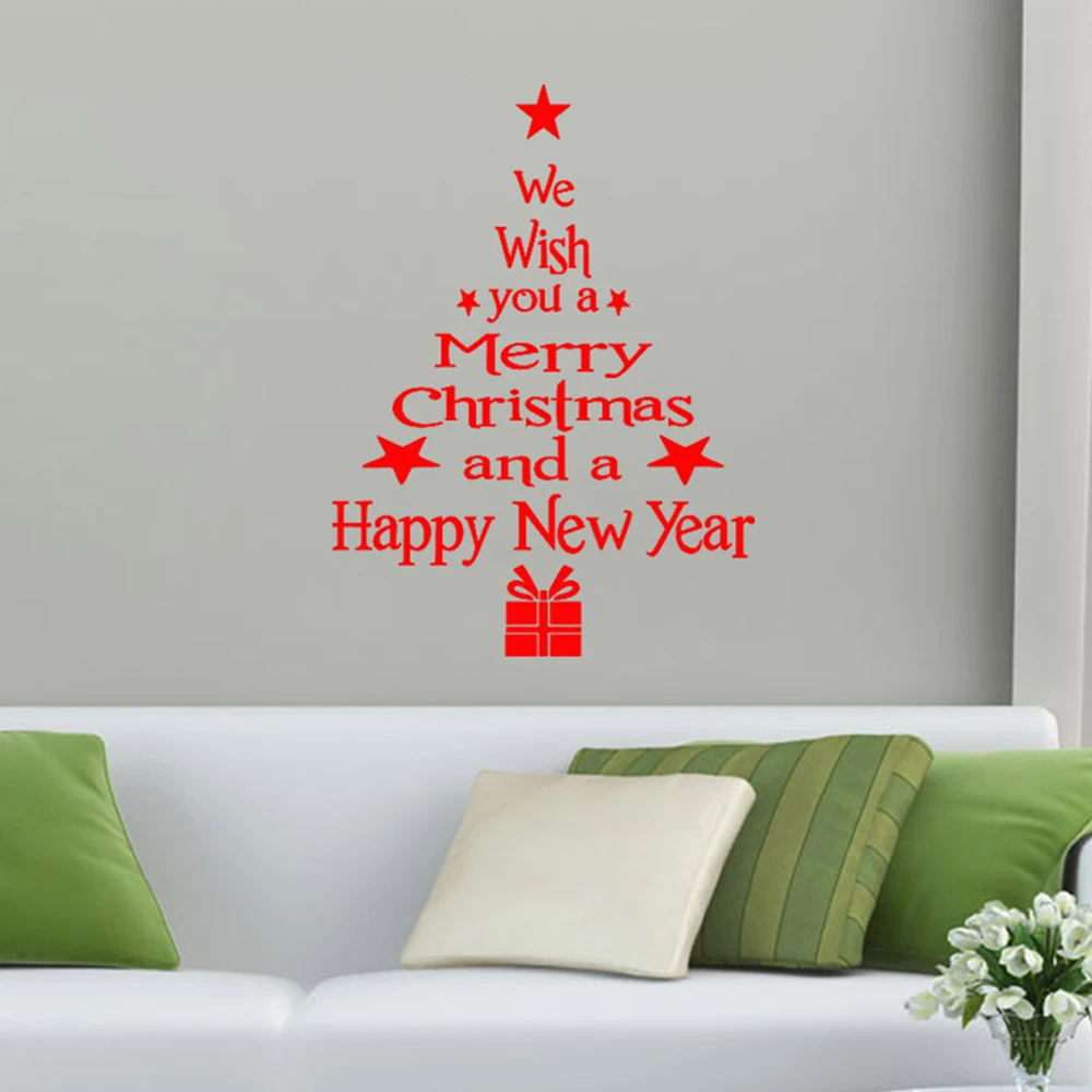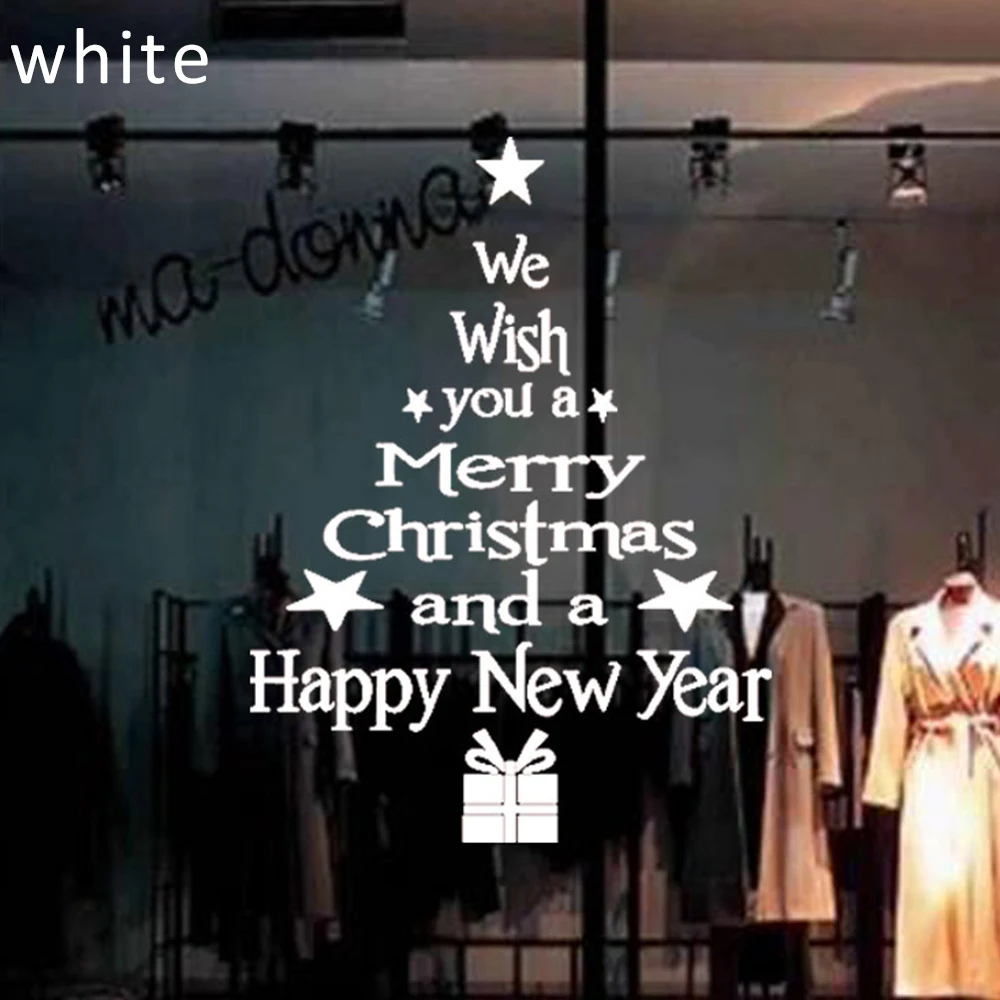 Съемная Рождественская Наклейка на стену, Рождественская елка, снеговик, Рождественский Новогодний подарок, магазин, белое, красное Рождественское украшение для дома
