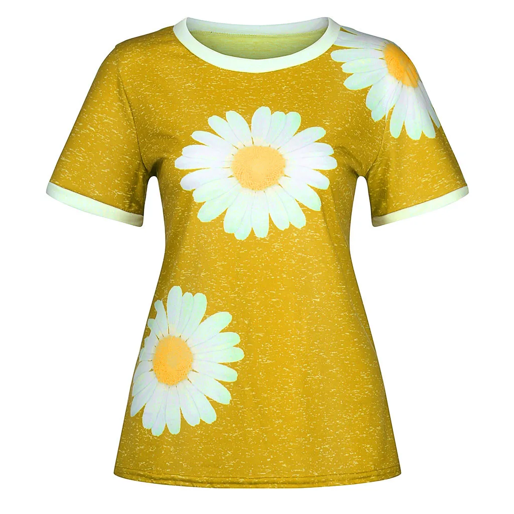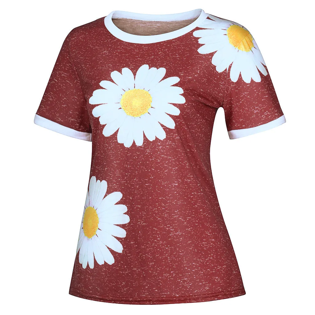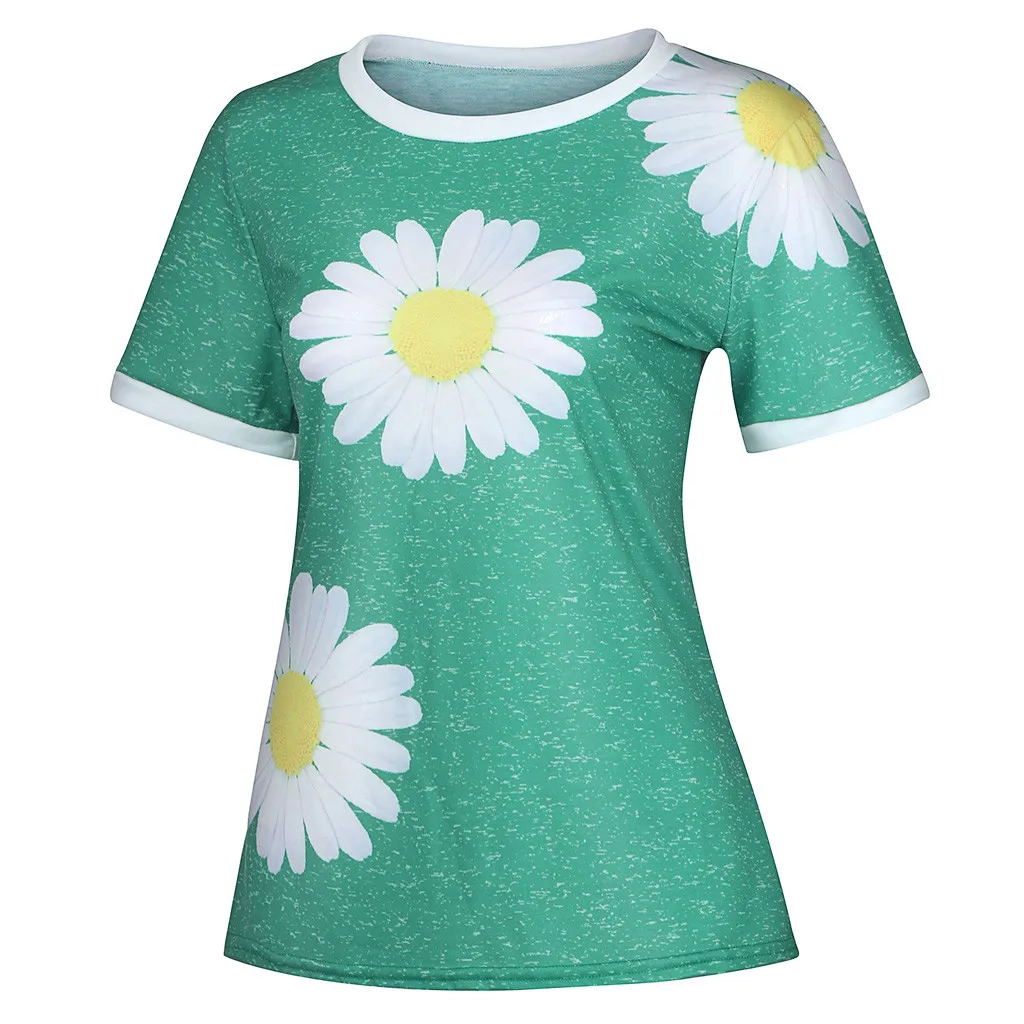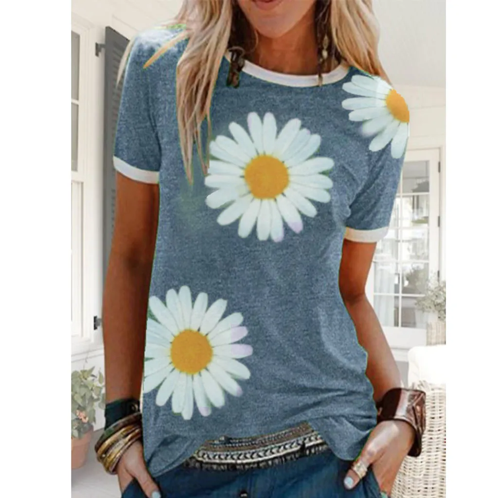 Женская Повседневная Лоскутная футболка с короткими рукавами и круглым вырезом с принтом «маленькая Маргаритка»