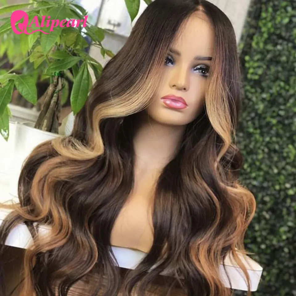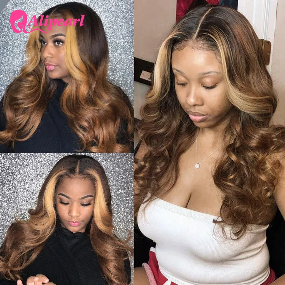 Коричневый изюминкой объемная волна Кружева передние парики цвета медовый блонд, бразильские Реми эффектом деграде (переход от темного к 13x4 Искусственные парики для чернокожих женщин Alipearl волос