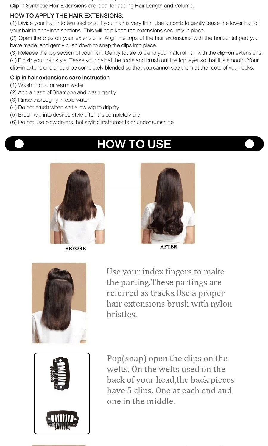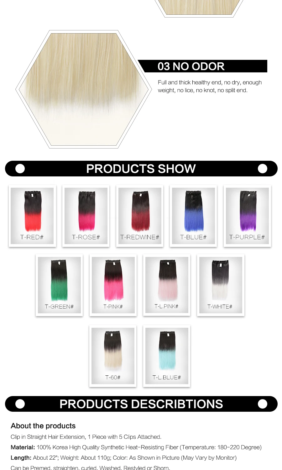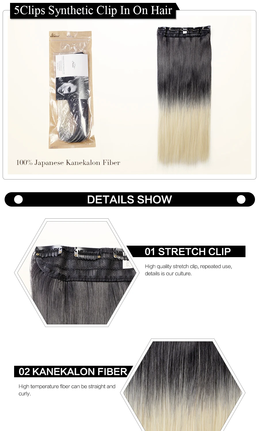 Тип изделия: синтетические волосы на заколках для наращивания Стиль: 1 прядь волос с 5 зажимами Материал: 100% Высококачественное Термостойкое волокно Длина: 20 дюйм (ов) Количество: 1 шт./упак. Цвет: как на картинке Отправка: в течение 24 часов, кроме выходных Условия доставки: CPAM, ePacket, DHL, Fedex