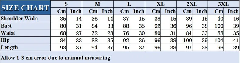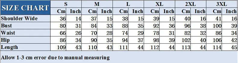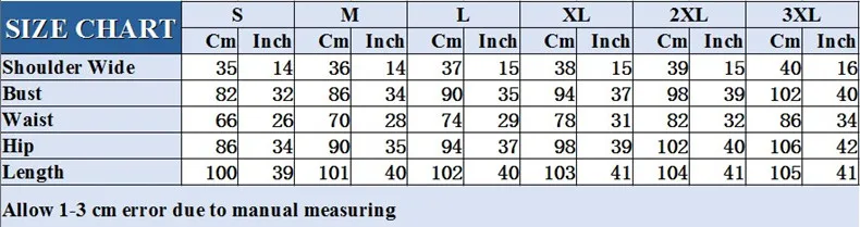 1. Из-за различных методов ручного измерения возможна погрешность в 1-3 см для эластичности ткани и других факторов. Таблица размеров предназначена только для справки.