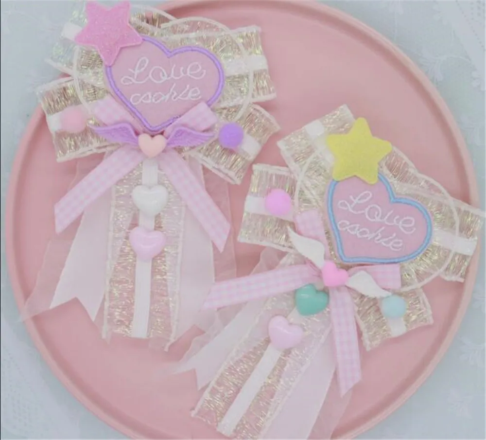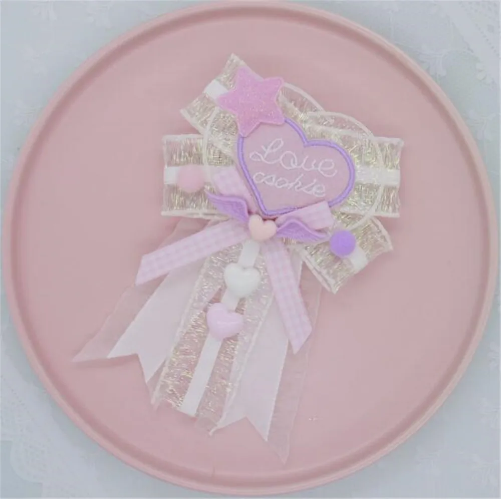 Милая брошь-значок в форме сердца с вышивкой в стиле Лолиты, брошь на булавке, лента, подарок ручной работы, D193