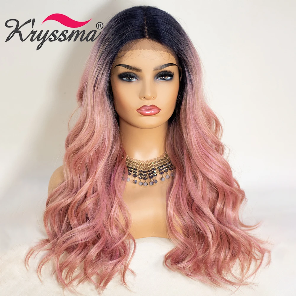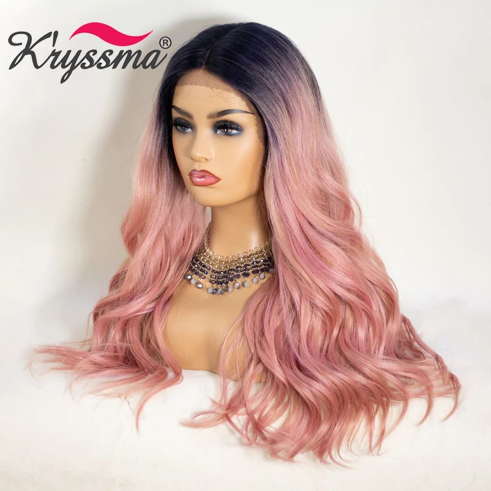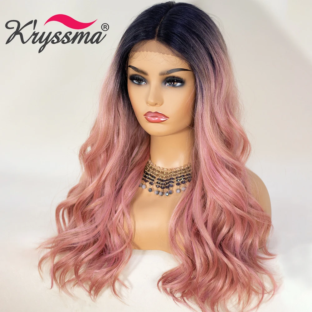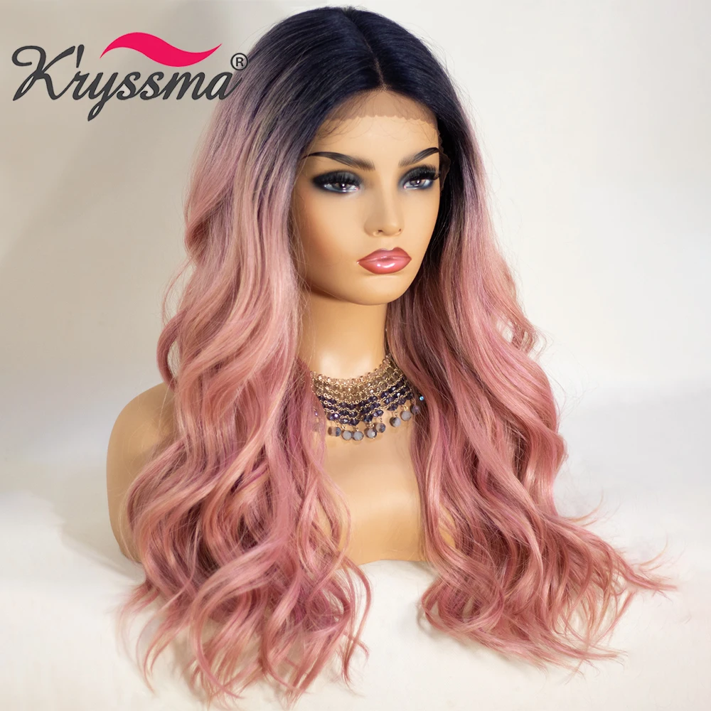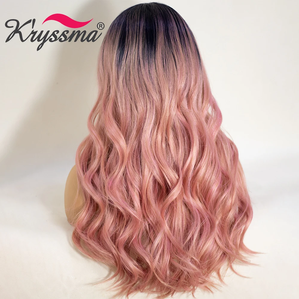 Kryssma Ombre розовые кружевные передние парики длинные волнистые синтетические парики для женщин Косплей парики Смешанные черные 2 тона термостойкие волокна волос