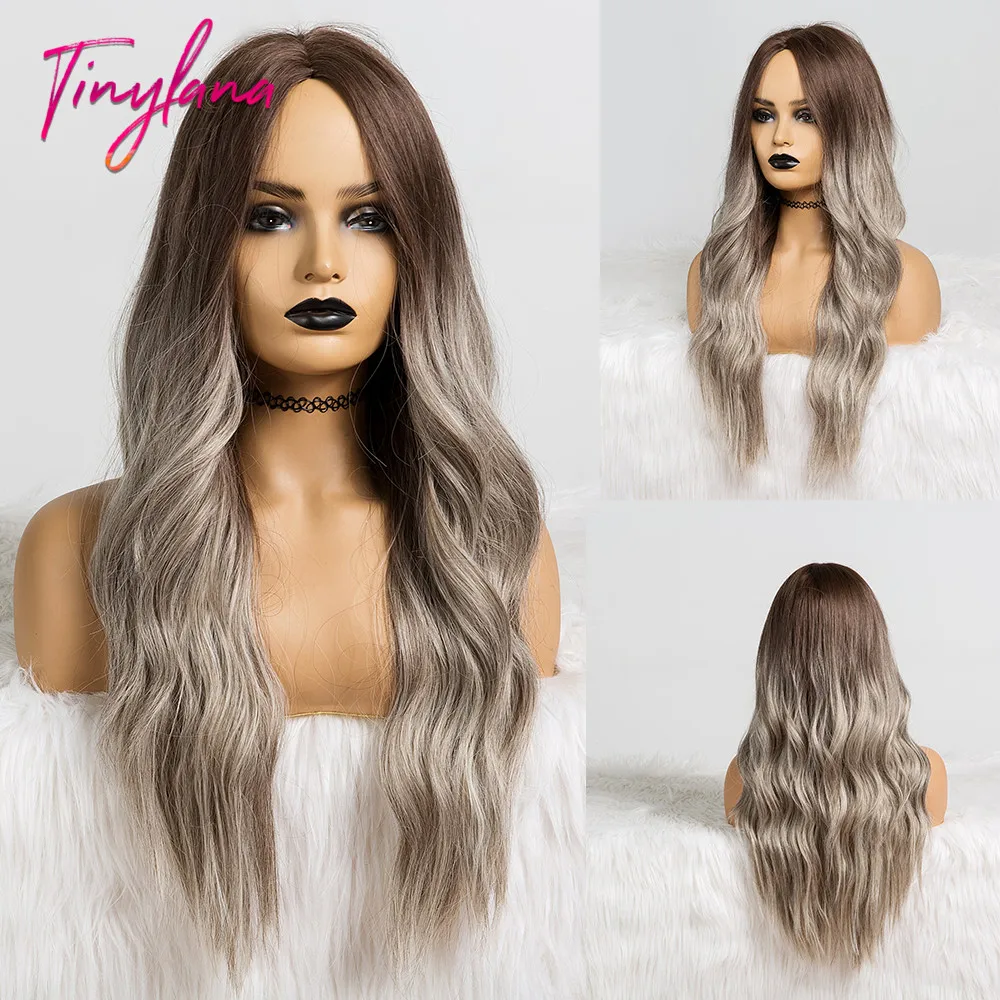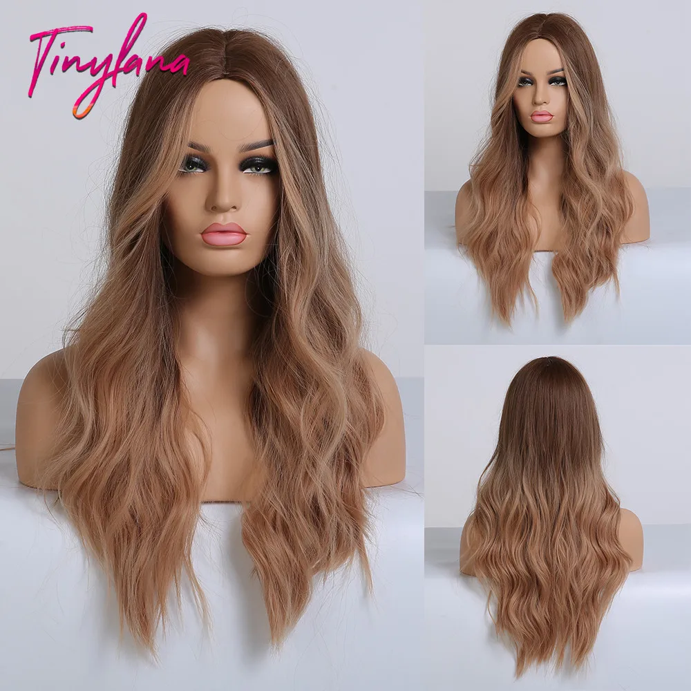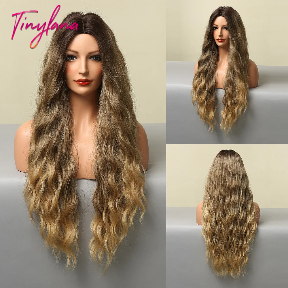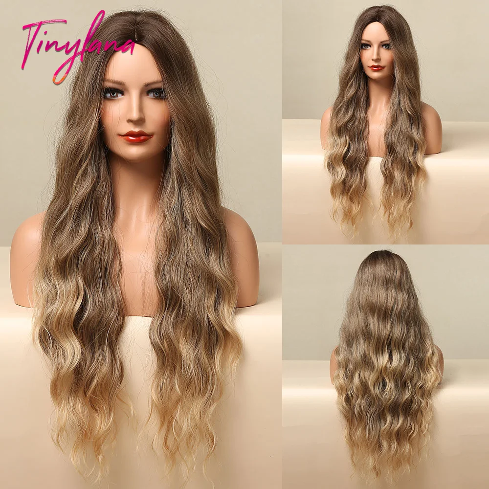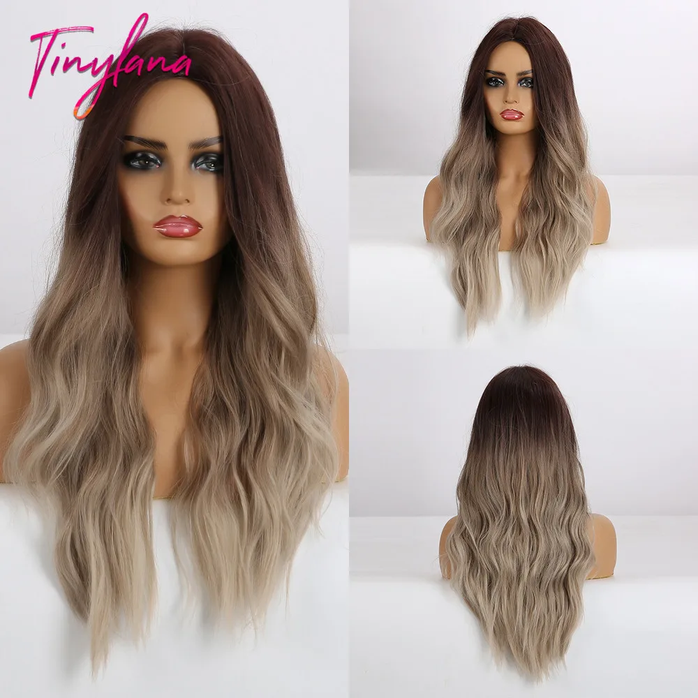 TINY LANA длинный волнистый женский парик Omber коричневый блонд Платина синтетические парики для Америки Африканская женщина Термостойкое волокно Косплей