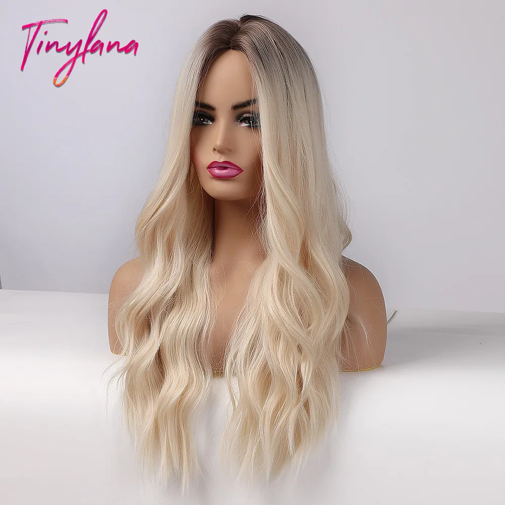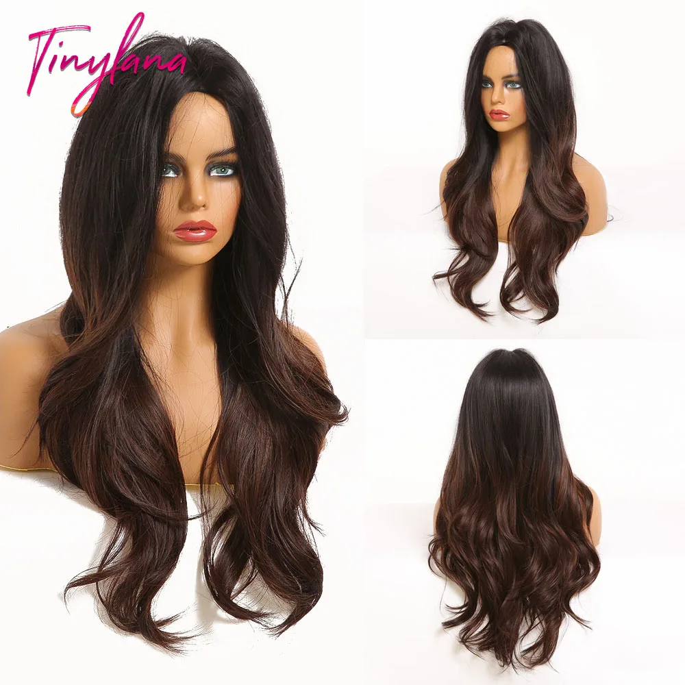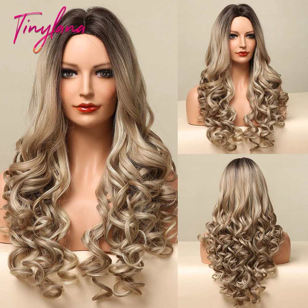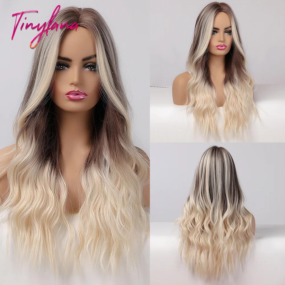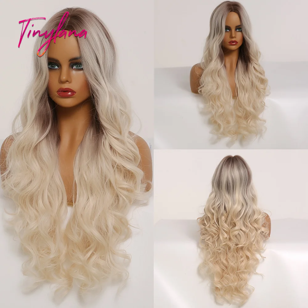 TINY LANA длинный волнистый женский парик Omber коричневый блонд Платина синтетические парики для Америки Африканская женщина Термостойкое волокно Косплей