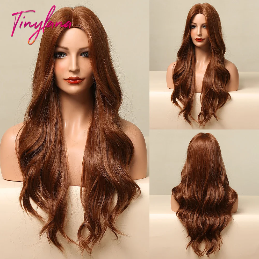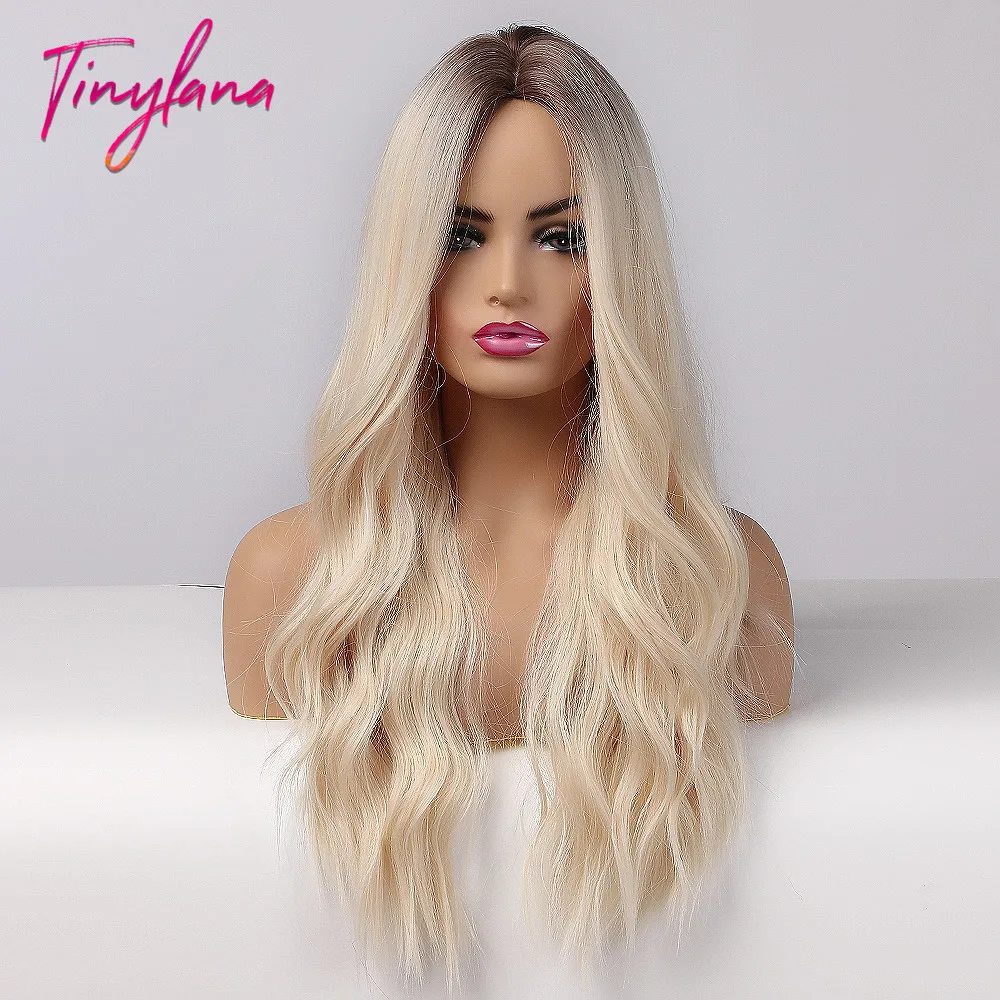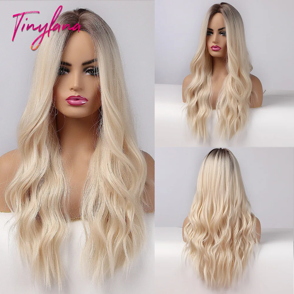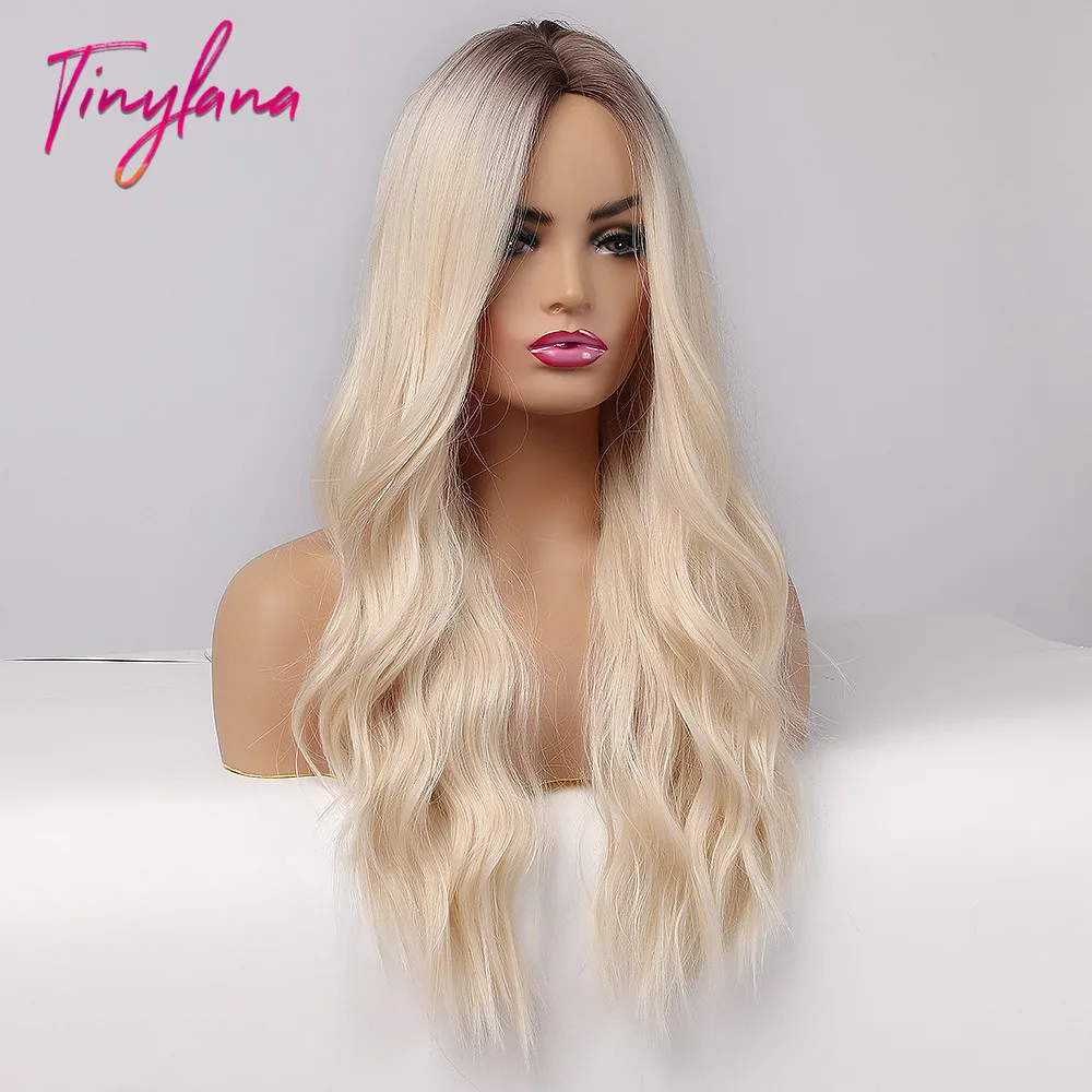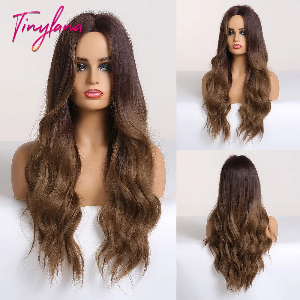 TINY LANA длинный волнистый женский парик Omber коричневый блонд Платина синтетические парики для Америки Африканская женщина Термостойкое волокно Косплей