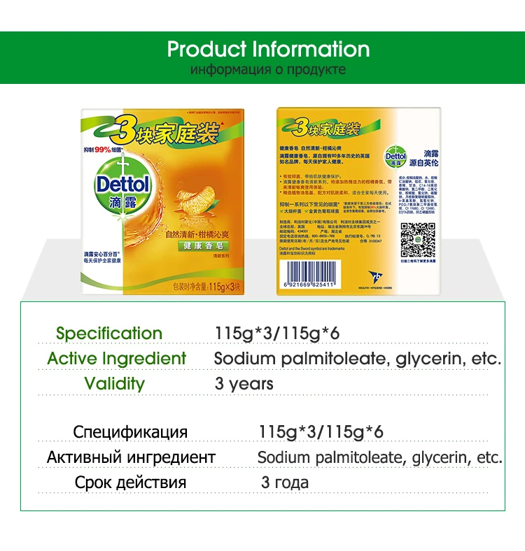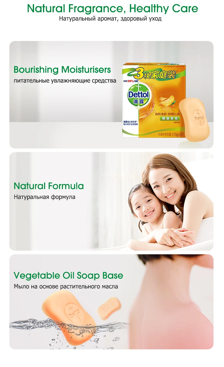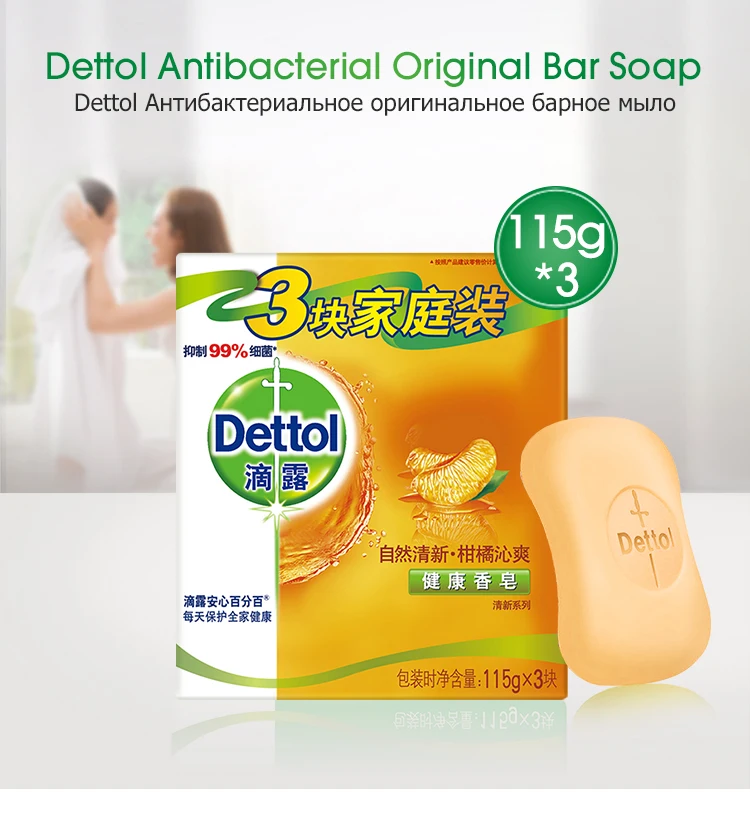 Dettol Antibacterial Original Bar Soap Orange Flavor 115g*3 99% Antibacterial Skin Nursing Washing Hand Bath Soap for Adults Kid