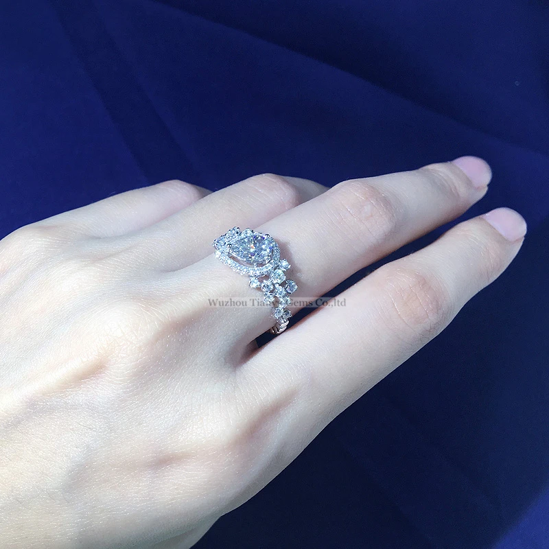 Tianyu драгоценные камни идеальный Груша Cut Moissanite 10k золото Ювелирное кольцо 5*7 мм DEF цвет сверкающий драгоценный камень Классический вечность любовь свадебный подарок Размер драгоценного камня: около 5*7 мм Вес драгоценного камня (ct):0.7ct/0.4ct Твердость: 9,25 могц Огонь (разочарование): 0,104 Цвет: DEF Четкость: VVS Форма: круглая блестящая Цвет металла: 10k белое золото Вес металла: 2 г