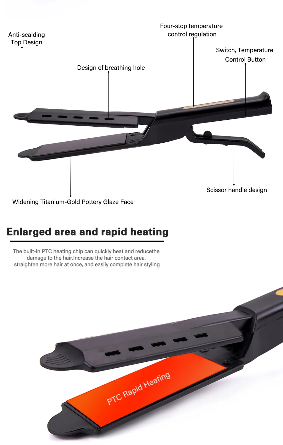 4. Расширенная панель: с помощью нагревательного микросхемы PTC теплопередача, дизайн вентиляционных отверстий, Влажная и сухая, пар для ухода за волосами, уменьшает повреждение волос.